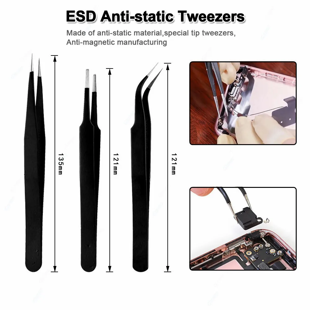 ● 3x ESD пинцет-Точный Пинцет для обработки небольших проводов, винтов и достижения там, где пальцы не могут.