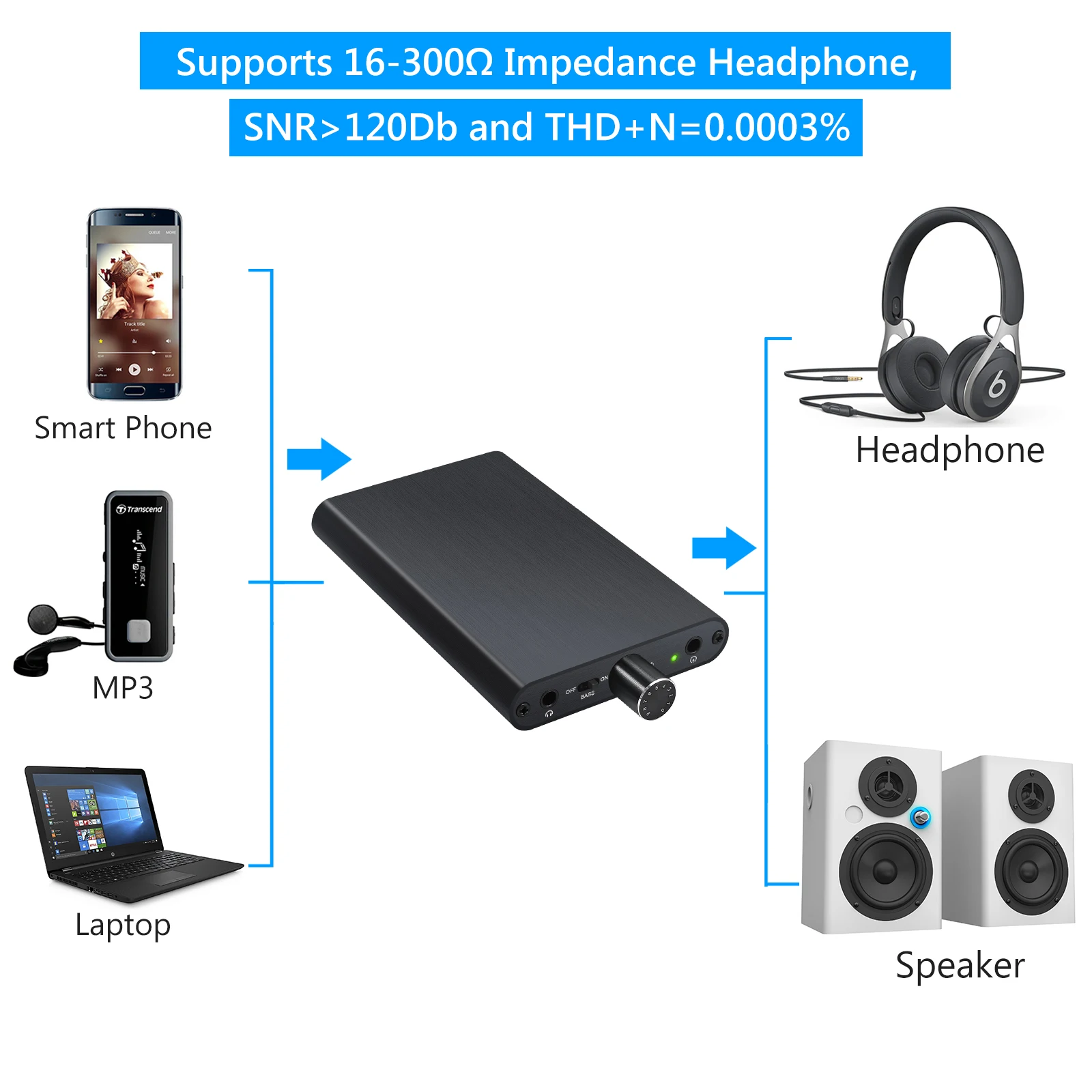 Портативные Hi-Fi наушники Neoteck 16-300 Ом, усилитель для наушников с встроенным внешним аккумулятором 3000 мАч и усилитель переключателя усиления