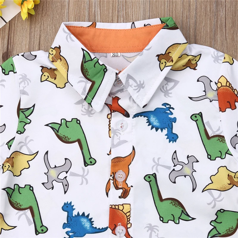 2020 комплект детской одежды для мальчиков, лето, джентльмен, модная рубашка с принтом динозавра, топы, шорты, наряд, От 1 до 5 лет