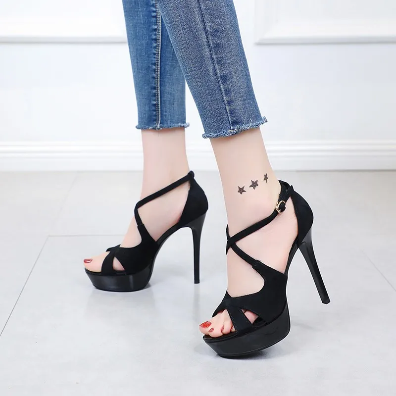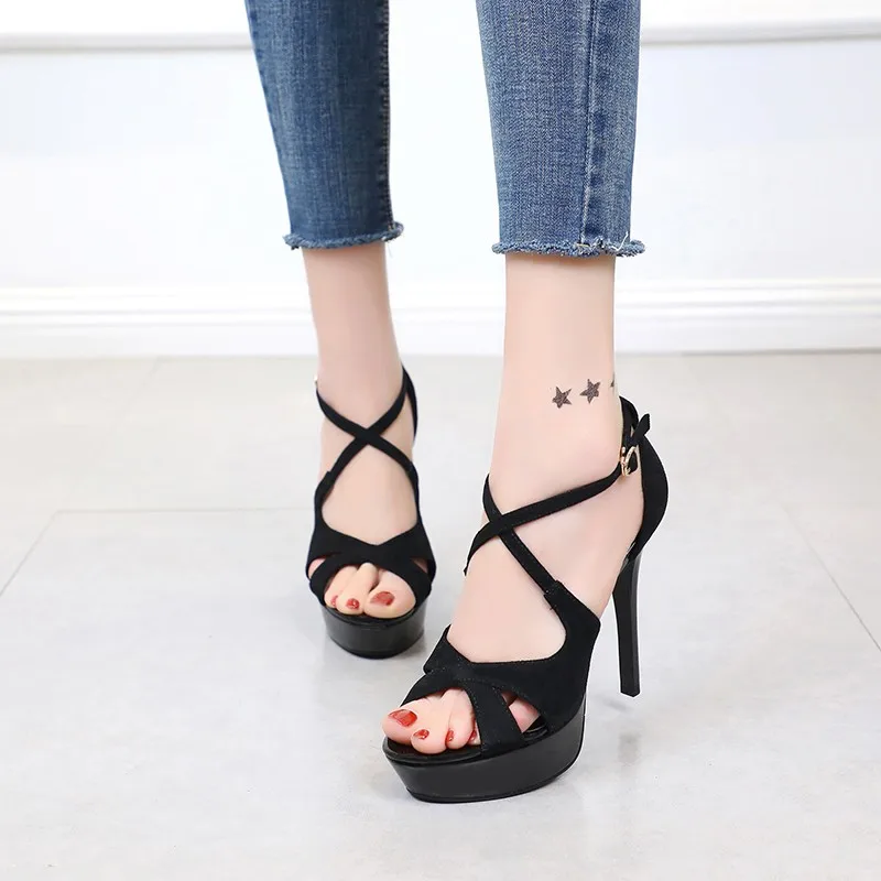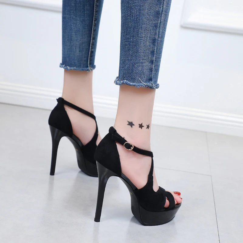 Босоножки женские на тонком высоком каблуке, повседневные туфли-лодочки, из флока, на платформе, летние сандалии, K0038, 2020
