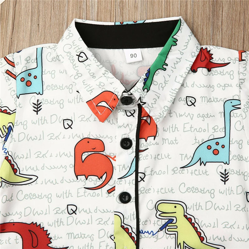 Модная летняя одежда для маленьких мальчиков 2020, топы с коротким рукавом и милым мультяшным динозавром, рубашка, повседневные короткие брюки, наряды из 2 предметов