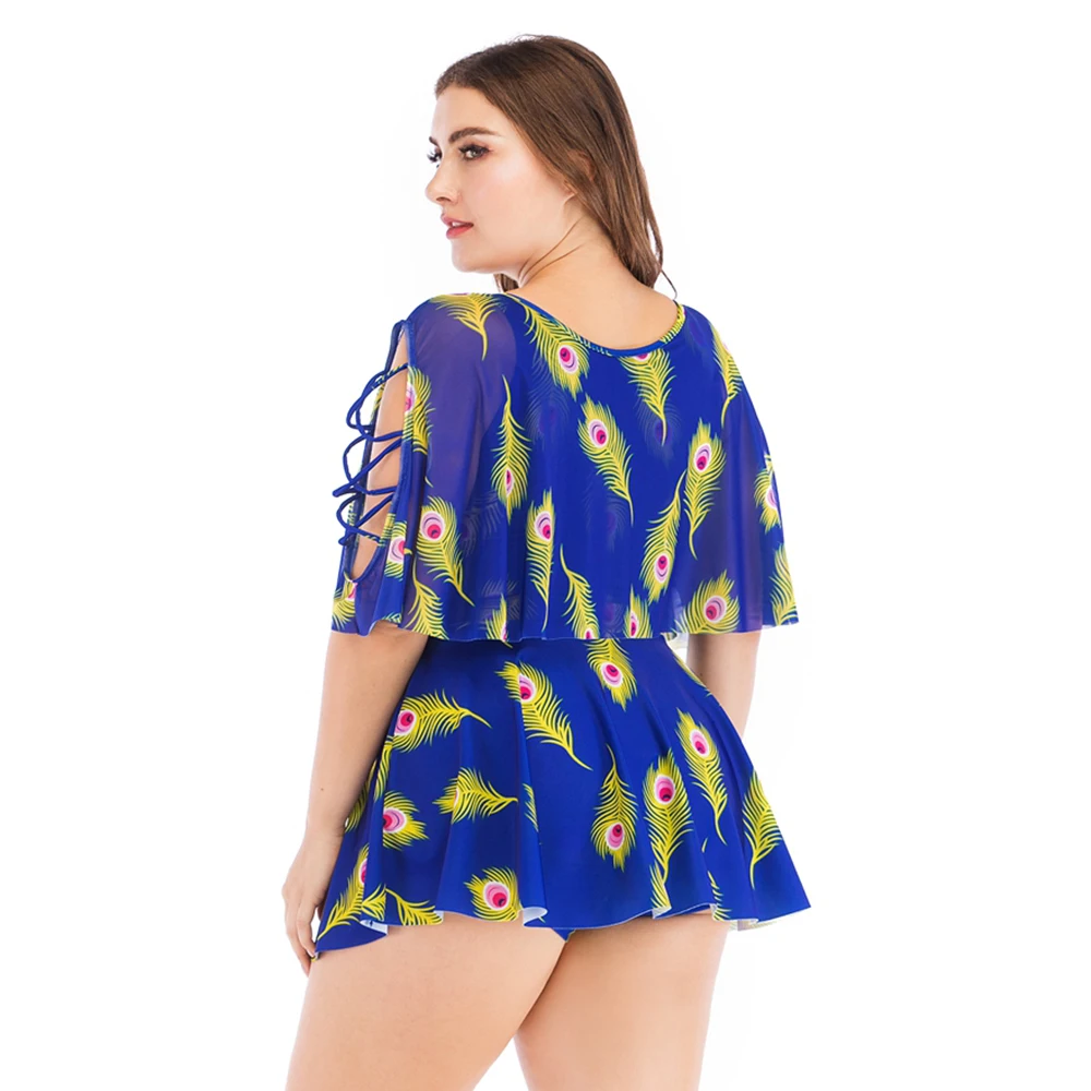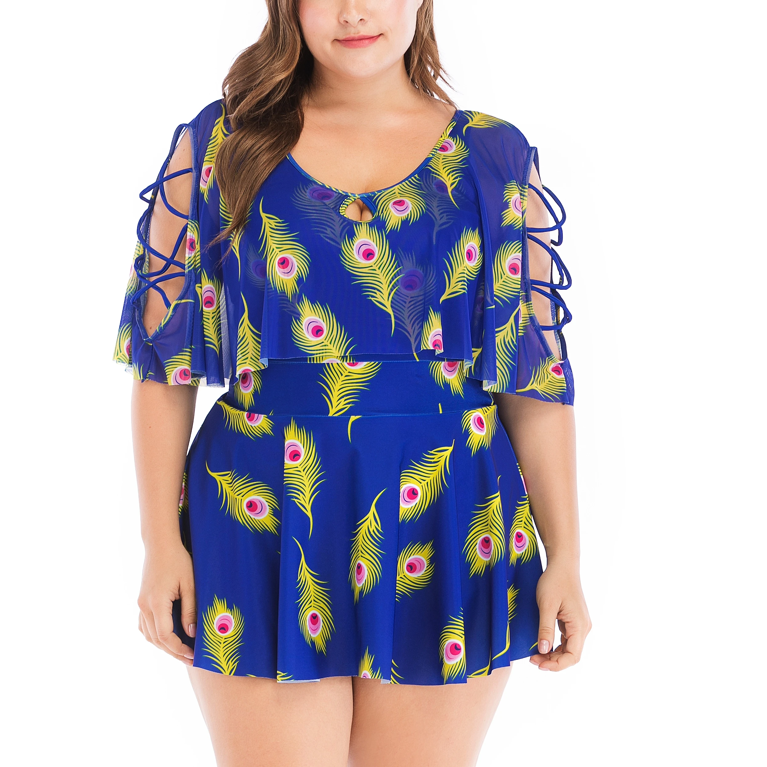 Размера плюс танкини купальный костюм женский из двух предметов, купальный костюм большого размера для мальчиков, короткое платье для плавания, сетчатый купальник с юбкой 5XL