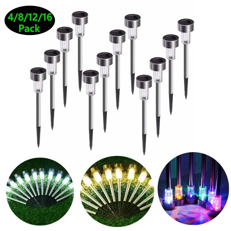 12 шт./лот, Солнечный сад, светодиодный свет, ландшафтный сад, садовый путь, газон, нержавеющая сталь, солнечные лампы, уличные заземления, Солнечный свет