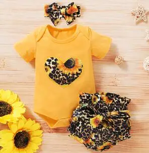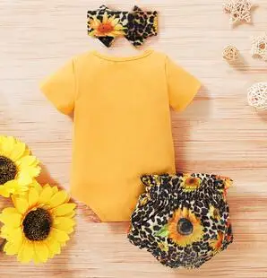 Citgeettлетние комплекты одежды для новорожденных девочек от 0 до 18 месяцев комплект из 3 предметов с принтом в виде цветов подсолнуха, комбинезон с короткими рукавами, шорты, повязка на голову