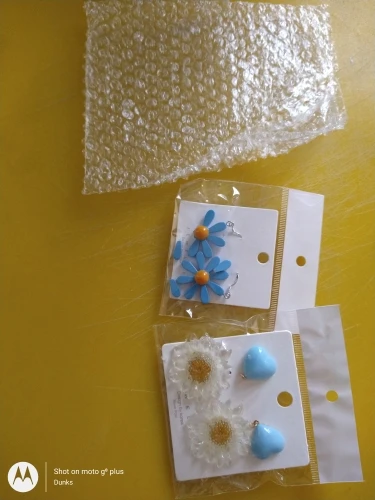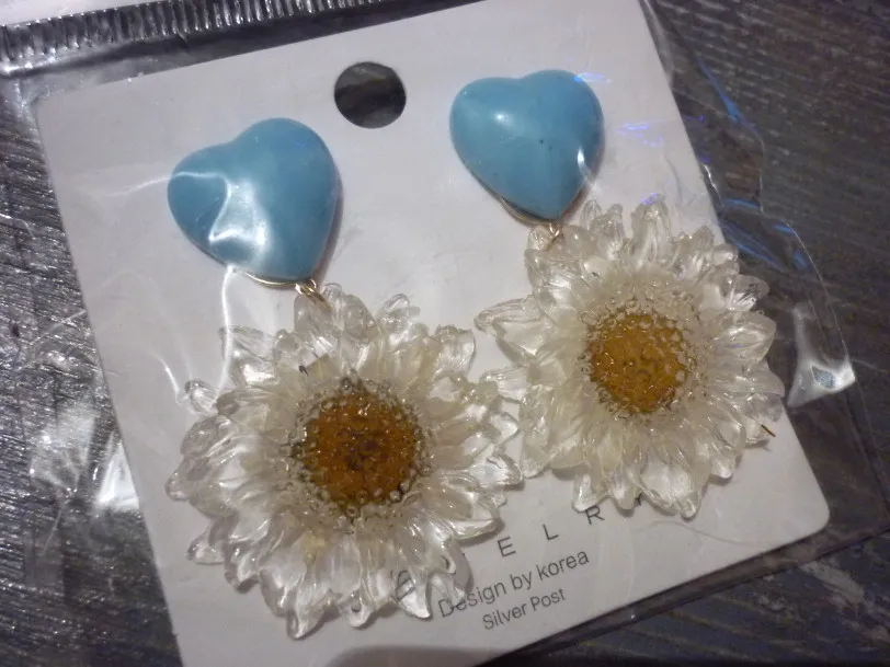 Серьги в принципе нормальные, но а) голубой цвет на фото ярче и ромашка белее, в реале см. мои фотографии б) маловато, не мой размер. Пригодится на подарки, так как выглядят в целом хорошо, интересная задумка, и упаковка тоже нормальная, но если бы видела живьём, покупать не стала бы. ----------------------------------------------------------------------------------------------------------------------- Посылка с начала декабря шла объединённой из 18 позиций, с таможни её развернули назад в Китай, там она по всем сайтам отслеживания до сих пор и лежит, написала продавцам, не все отреагировали адекватно, решила подождать немного и открывать в январе спор, а в итоге я получила всё под Новый год отдельными пакетами, только одна где-то до сих пор идёт.