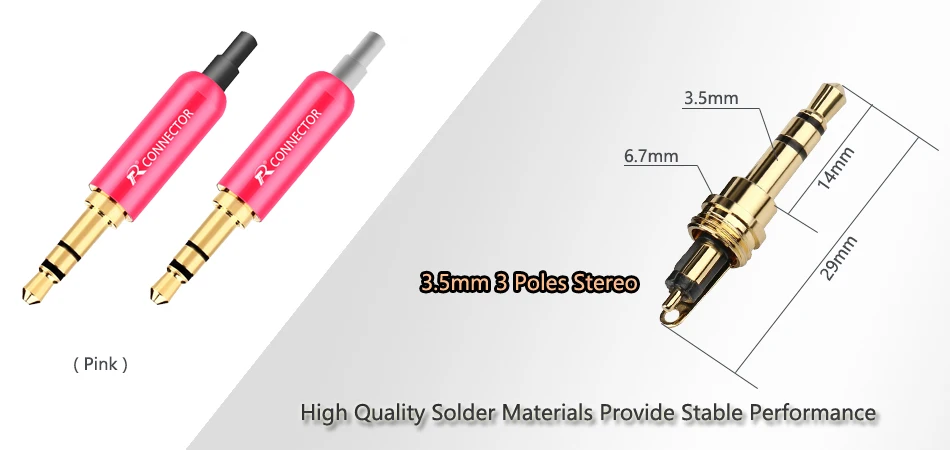 Очень качественные компактные разъемы. Корпус алюминиевый, завинчивается плотно, уплотнительный хвостовик эластичный, самый раз для ремонта наушников и подобных им устройств. На выбор разные цвета, на любой вкус. Доставка месяц, отличный продавец!