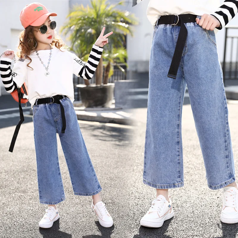 Джинсы с широкими штанинами для девочек, на возраст 5-13 лет