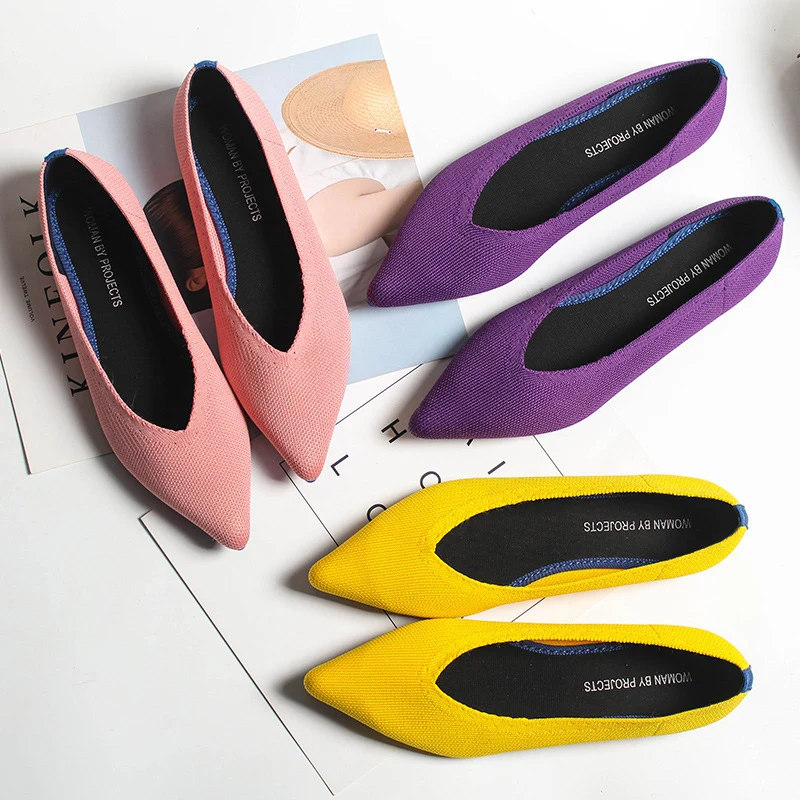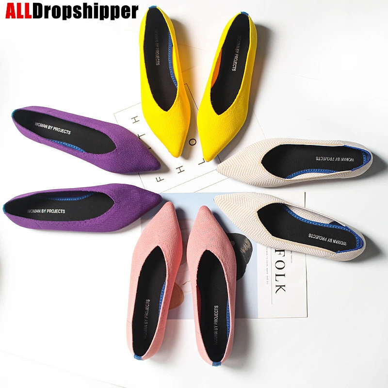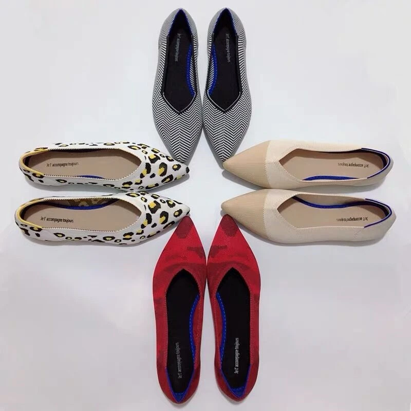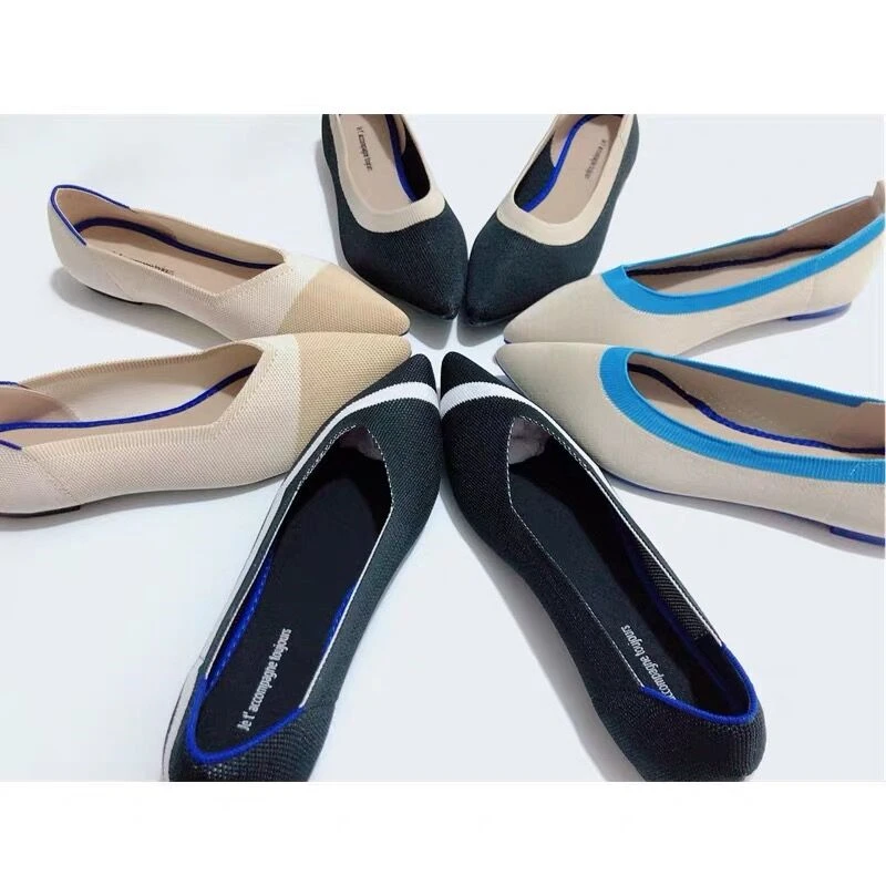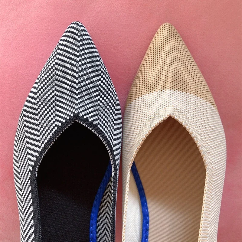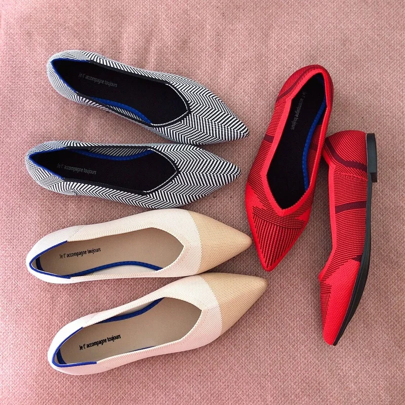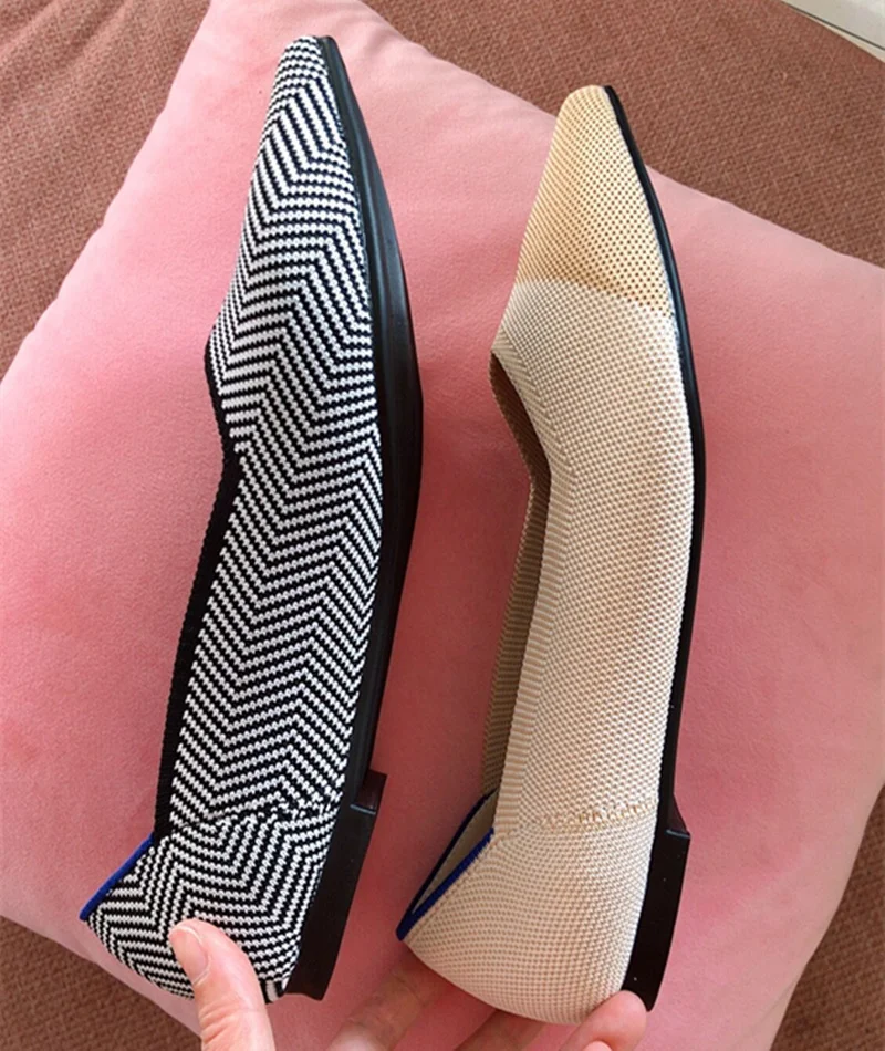Размера плюс, женская обувь на плоской подошве; Дышащая вязаная обувь с заостренным носком Мокасины смешанных Цвет с волнообразным краем; Zapatos De с закрытым носком; Обувь для медсестры; Мягкая обувь для беременных