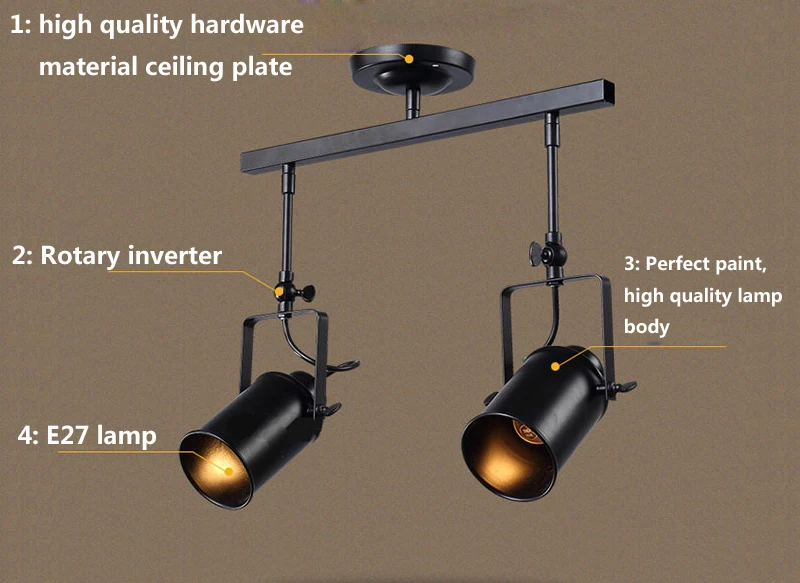 Винтажный Железный Лофт Промышленные прожекторы Регулируемый подвес...