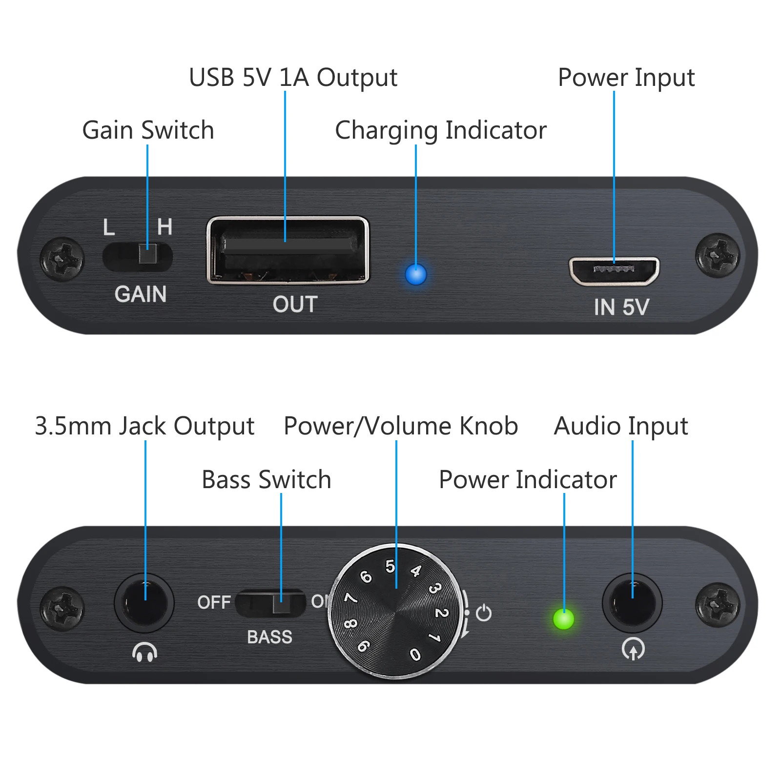 ESYNiC 16-300 HiFi усилитель для наушников Встроенный внешний аккумулятор с переключателем усиления басов Универсальная совместимость 3,5 мм AUX усилитель для наушников