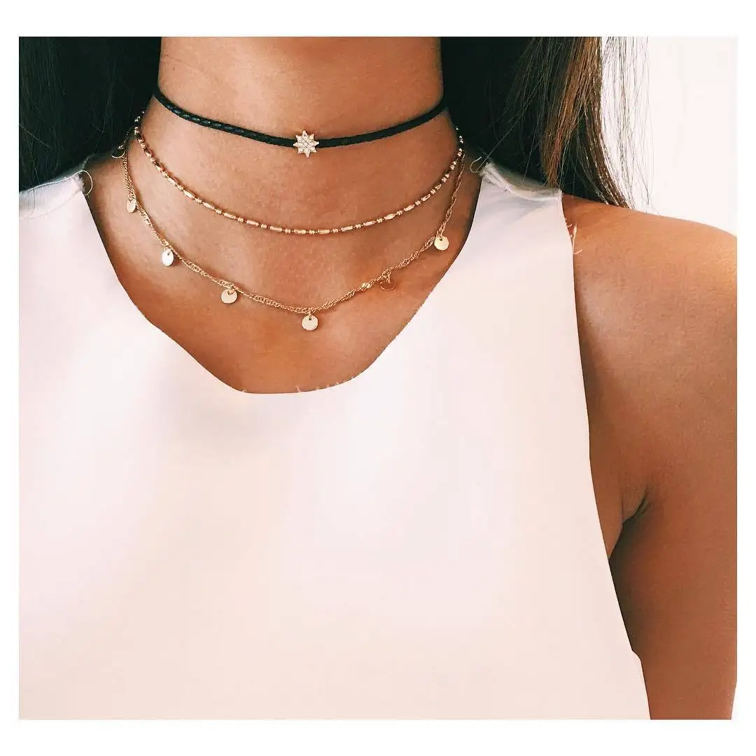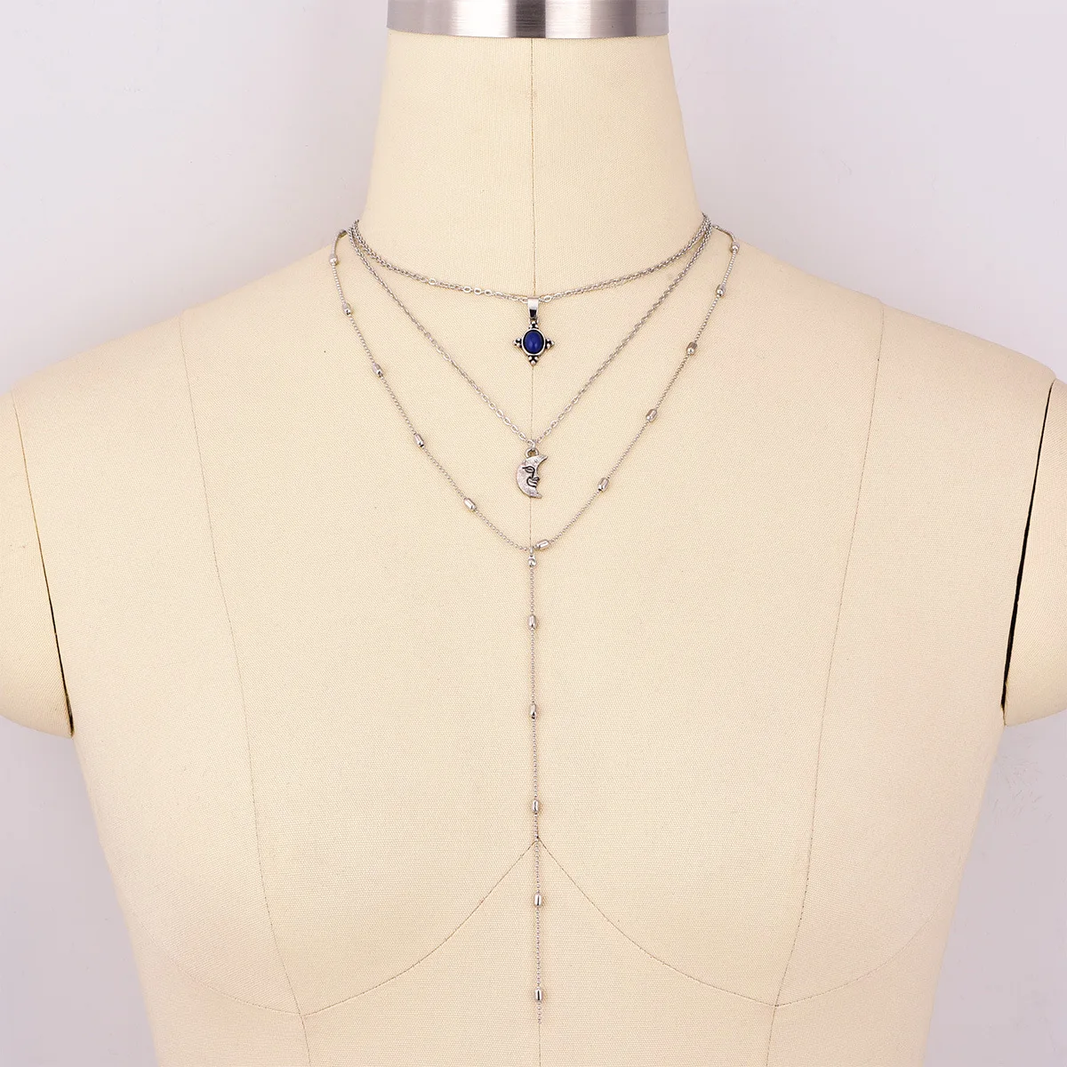 Модные многослойные ожерелья Подвески Винтаж колье-чокер с Луной д...