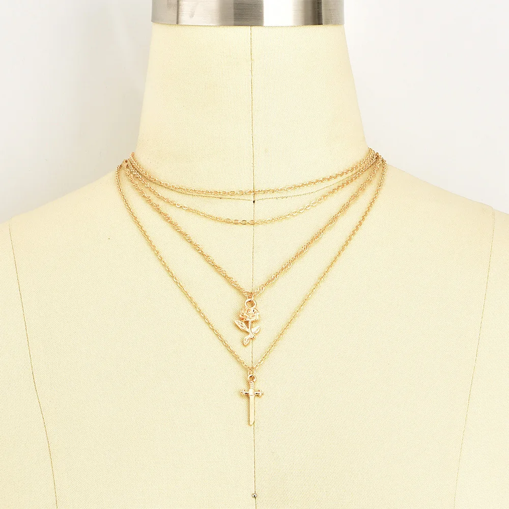 Винтажное многослойное ожерелье с подвеской из кристаллов, женское ...