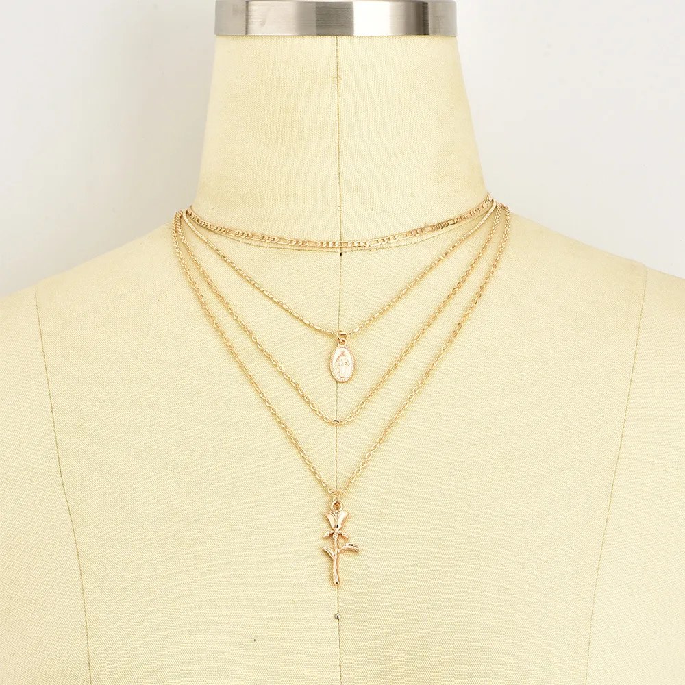Женское многослойное колье, ожерелье из нержавеющей стали с подвеск...