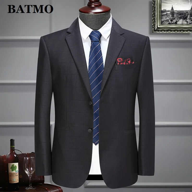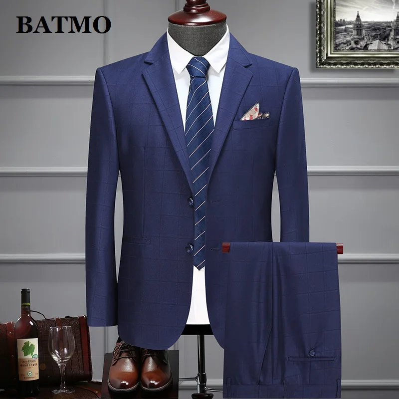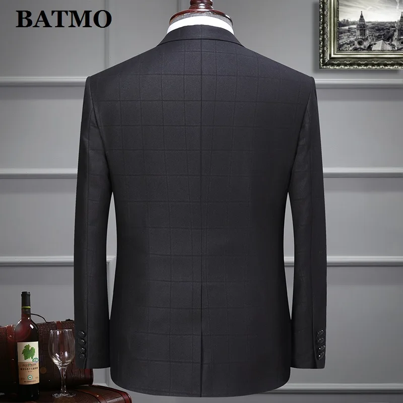 Мужской облегающий деловой костюм BATMO, из двух предметов, в клетку, смокинговый костюм для жениха, свадебный костюм