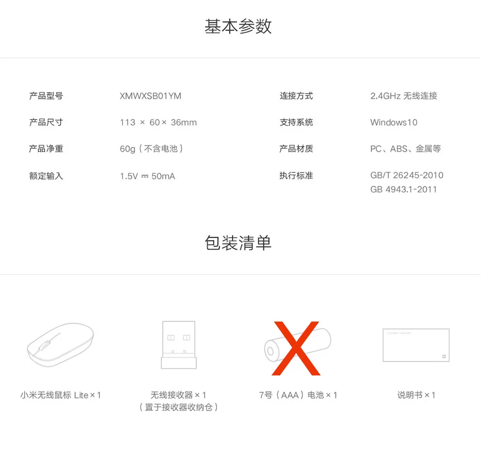 1 х Мышь Xiaomi (Не включает аккумулятор)