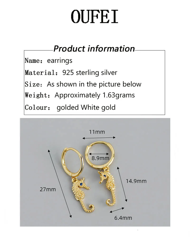 Женские серьги OUFEI из серебра 925 пробы, милые серьги с животными, ювелирные изделия, женские серьги Ehnic с морским коньком, новая мода 2020