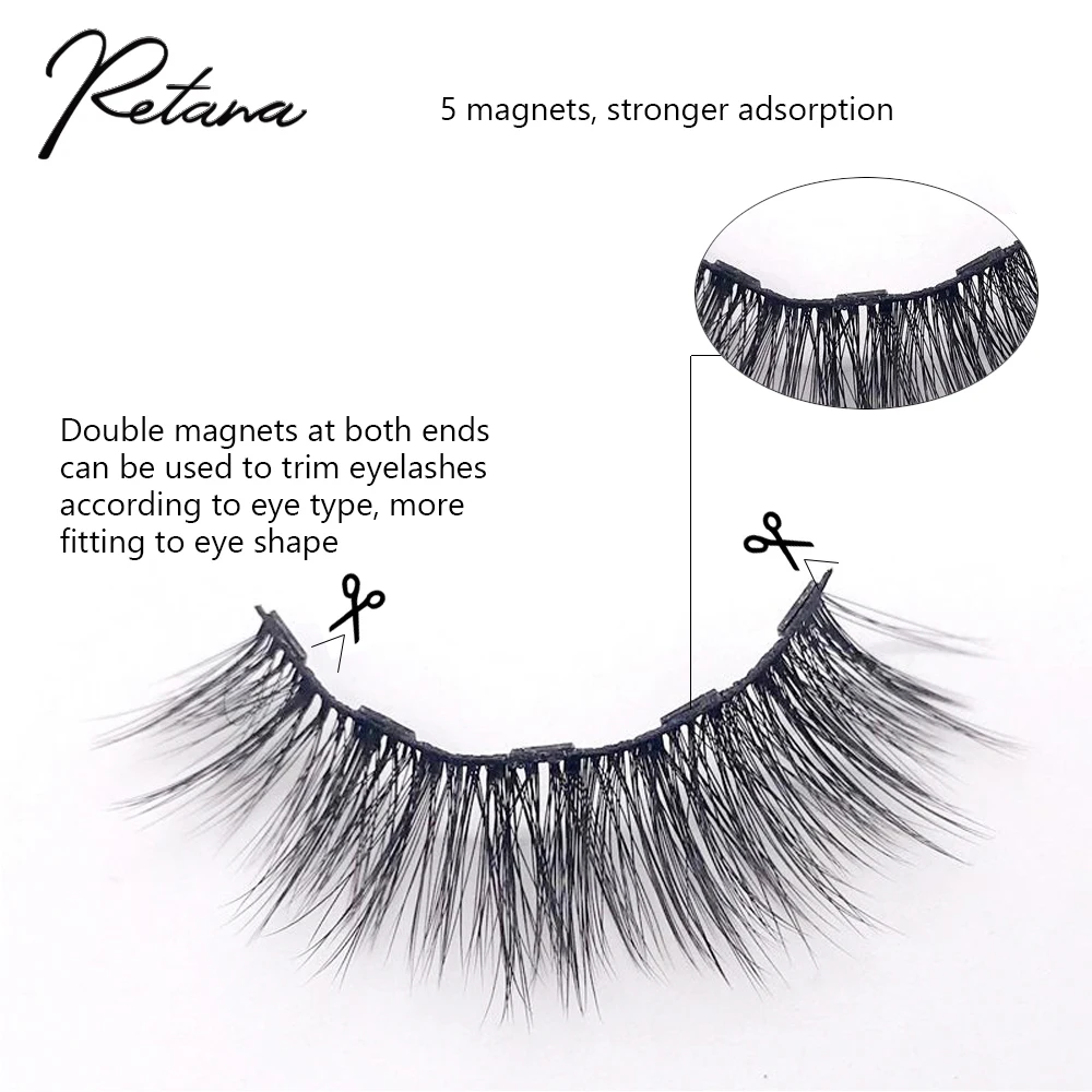 Пара натуральных магнитных накладных ресниц ручной работы с 5 магнитами можно использовать повторно в магнитной подводке для глаз Водонепроницаемый макияжный костюм