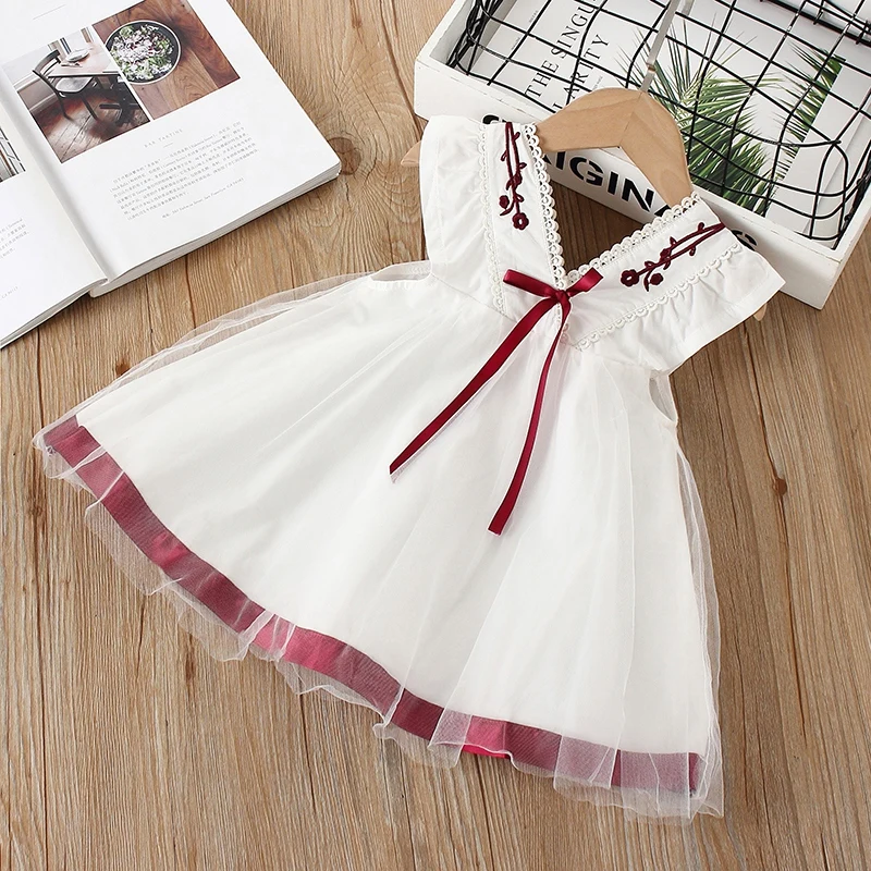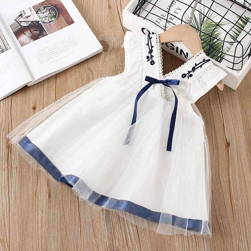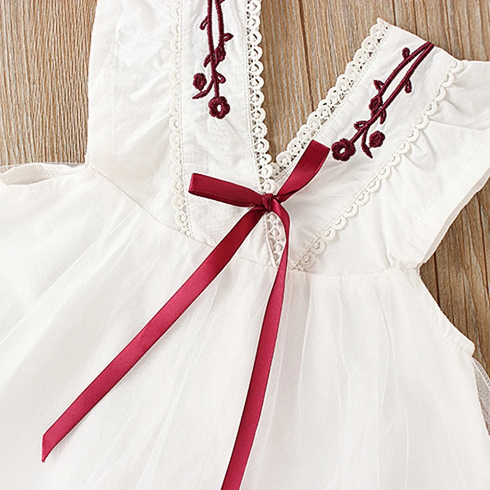 Брендовая одежда принцессы для девочек; Фатиновые платья с вышивкой и бантом для маленьких детей; Платье без рукавов