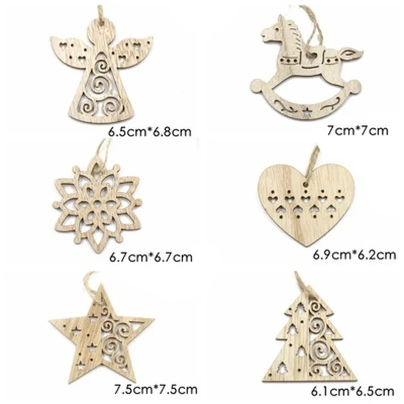 6 шт. DIY деревянные елочные игрушки предметы для рождественских по...