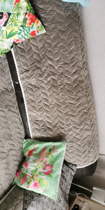 Очень хорошее качество и приятно, как на фотографиях. Я рекомендую его на 100%. Идеально подходит для защиты дивана, особенно если у вас есть домашние животные. Нескользящие, очень мягкие и мягкие. Доставка в Мадрид, Испанию была очень быстрой, занимает 15 дней.