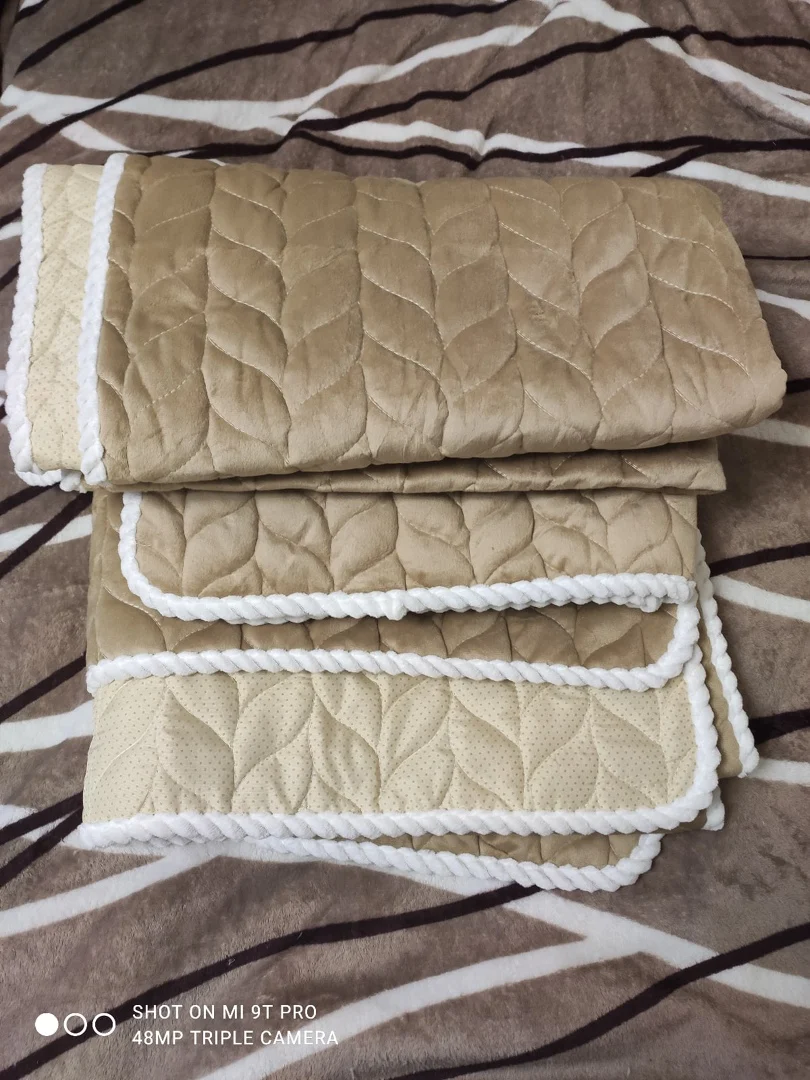 Очень крутые покрывала. Аккуратно сшиты, приятные на ощупь, с обратной стороны специальные пупырышки (третье фото), благодаря которым покрывало не скользит. Для своей цены просто огонь. С продавцом не общался, но он отправил все сразу. Доставка заняла месяц.