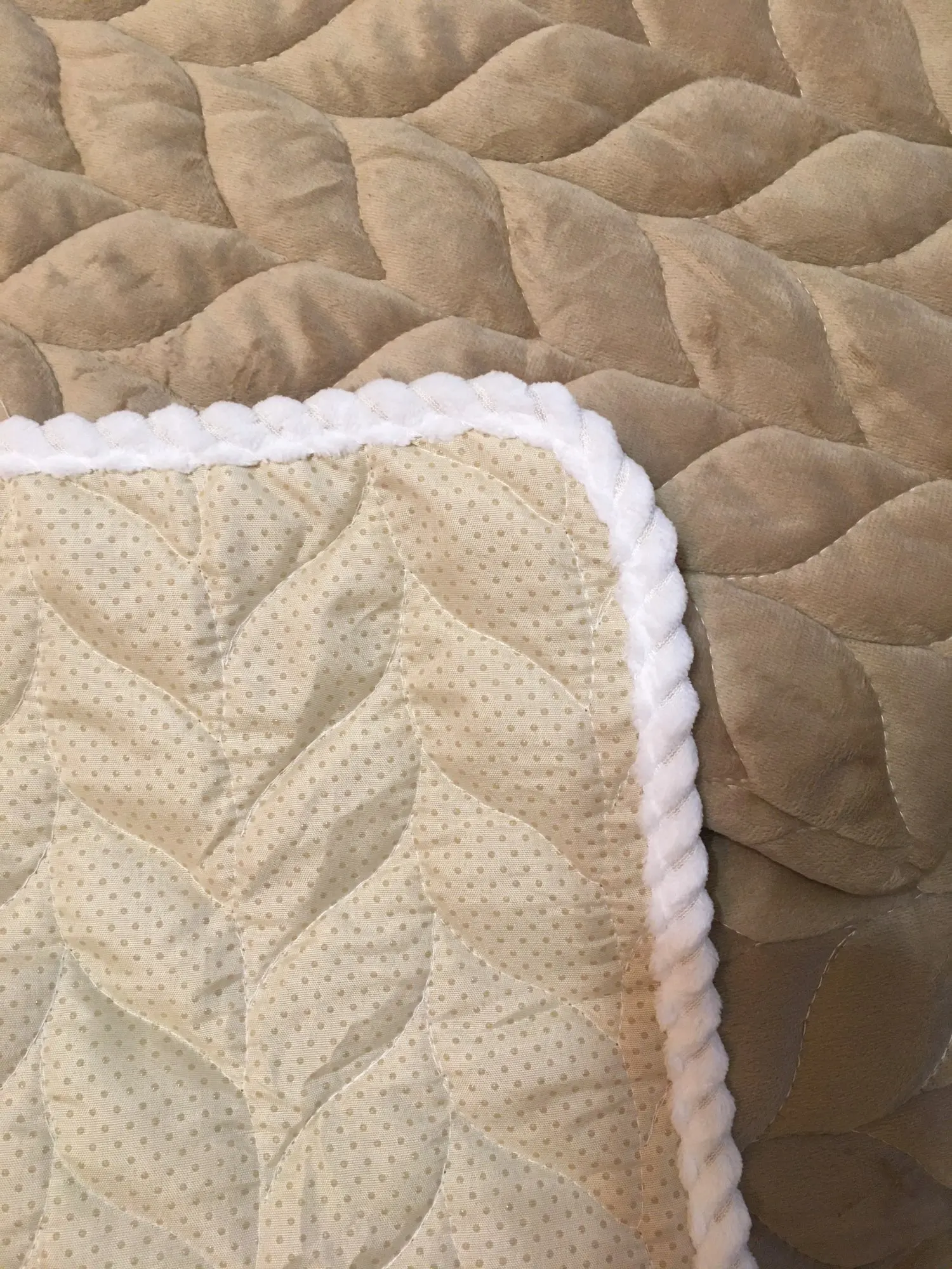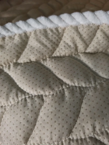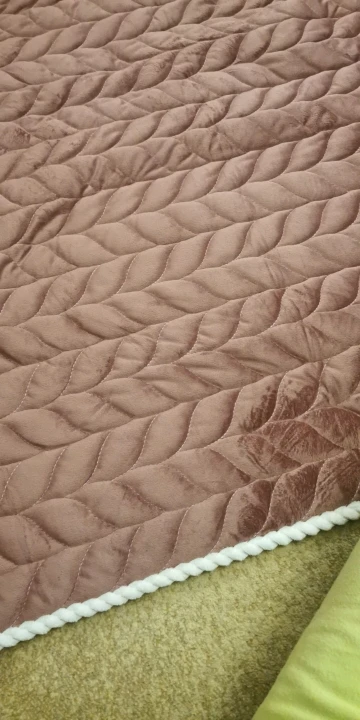 покрывало очень мне понравилось, швы все ровные, с изнанки прорезиненные капли от скольжения, лицевая сторона мягкая приятная ткань с небольшим ворсом. Край обработан, цвет как на фото нежно-розовый. Доставка мега быстрая. Запаха постороннего нет.