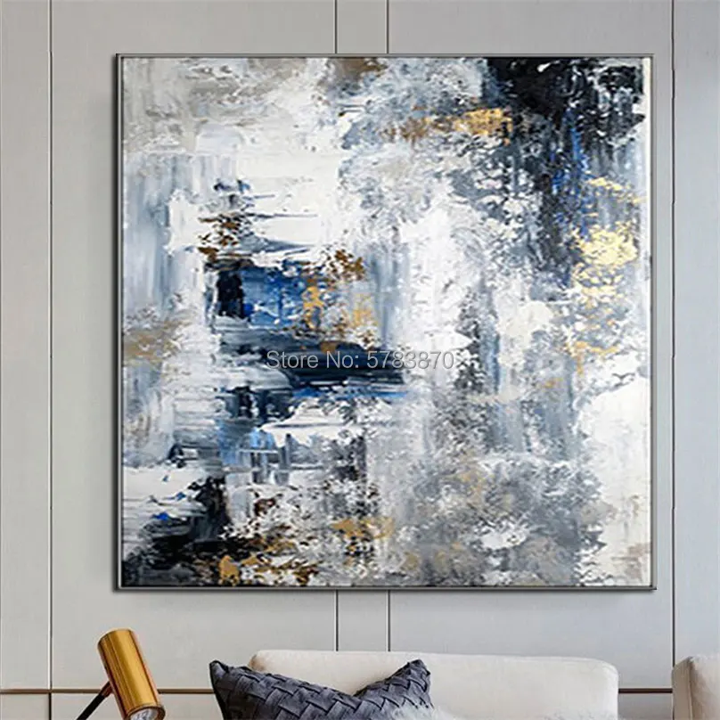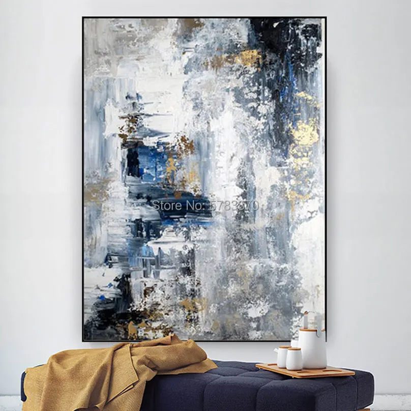 Ручная роспись, абстрактная картина маслом, картина современного искусства, большая синяя, серебристая, серая Вертикальная Настенная картина, современный дизайн, художественное оформление