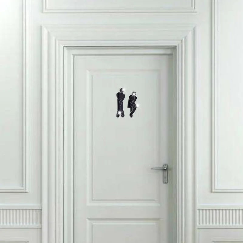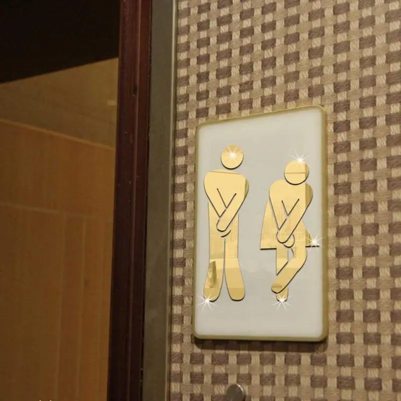 3D знак входа в туалет зеркальная настенная наклейка, знак двери туалета для мужчин и женщин, черный, золотой, серебристый, водостойкая настенная наклейка, домашний декор, Новинка