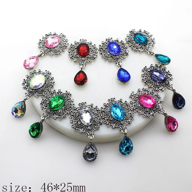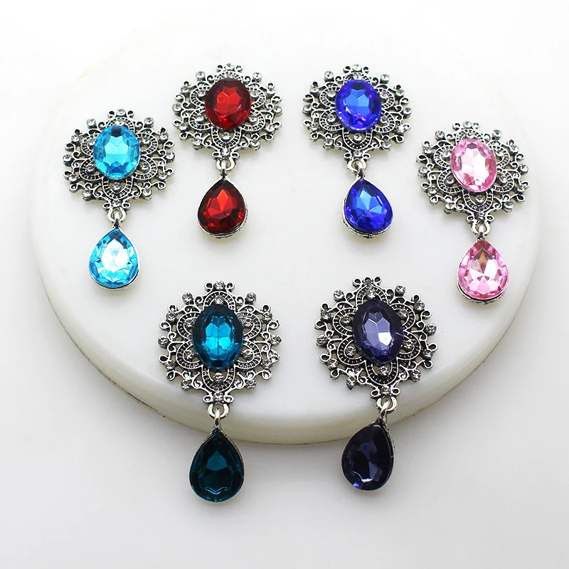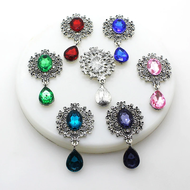 Винтажный, из металлического сплава, со стразами Подвеска плоская брошь 45*25 мм 10 шт.компл. тканые аксессуары для одежды Свадебные украшения Аксессуары пуговицы
