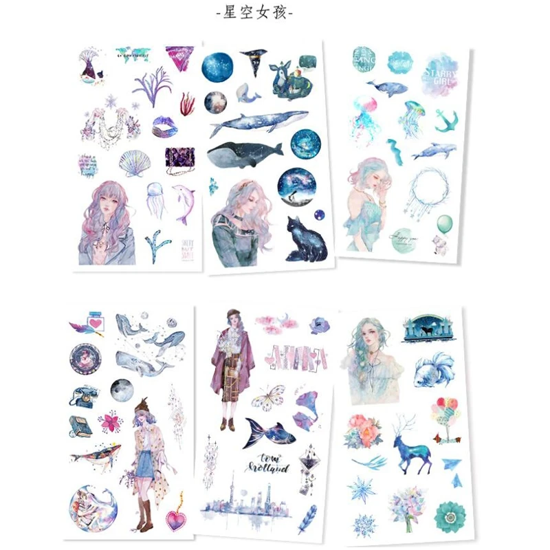 6 штук, с рисунками мультипликационных героев, с рисунками кошки и бабочки, японский Стиль Творческий прозрачные наклейки студенческие канцелярские принадлежности альбом для вырезок, подарки, украшения