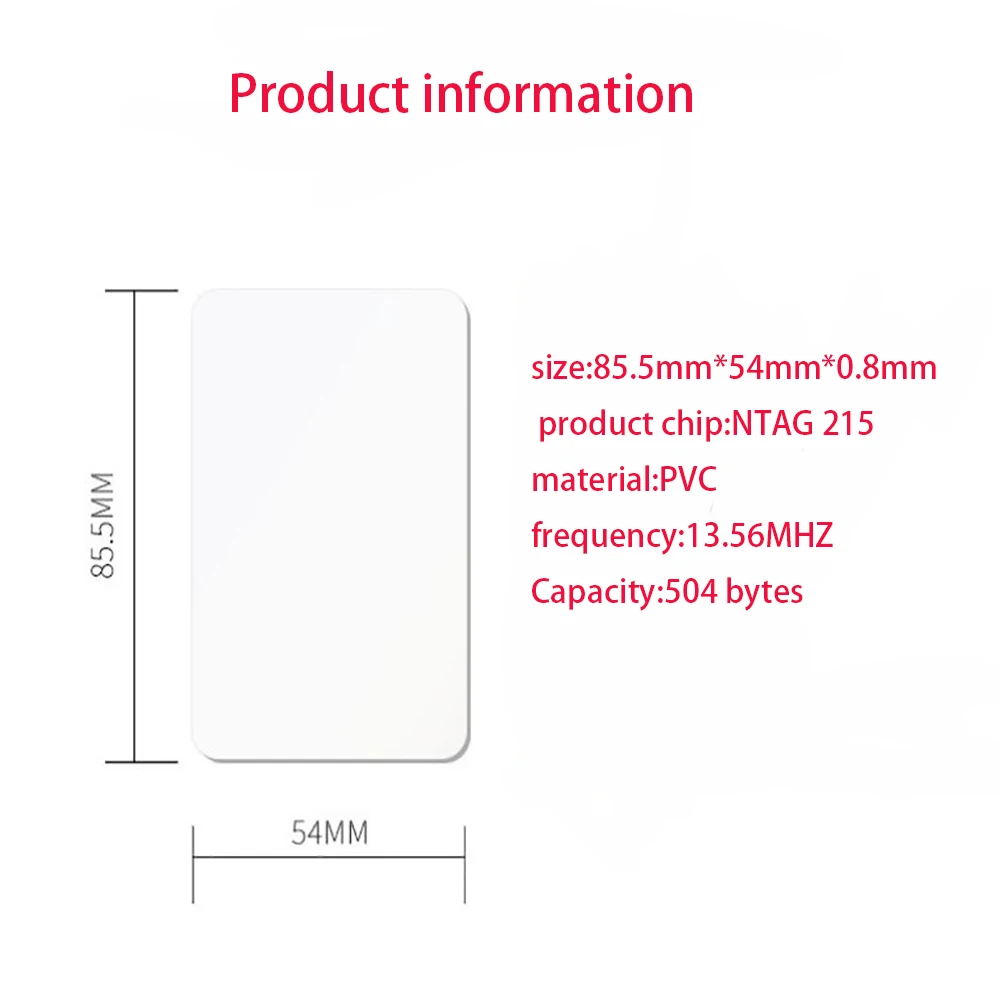 Совместимость: 1) Поддержка 13,56 МГц RFID и NFC IC reader/writer, например: Acr122u reader/writer 2) Поддержка смартфонов с функцией NFC. Посылка включает в себя: 50 шт. Ntag215 NFC карточки