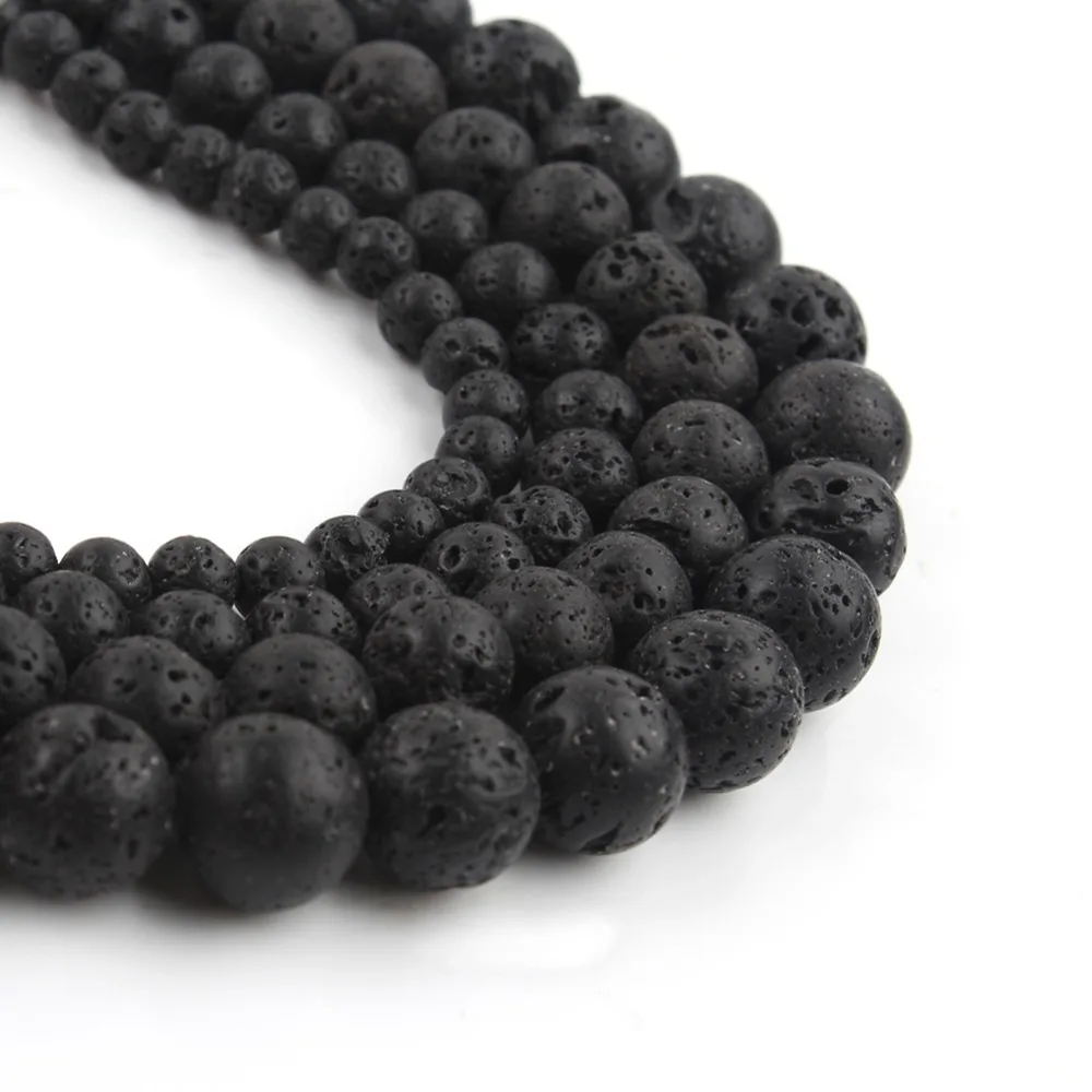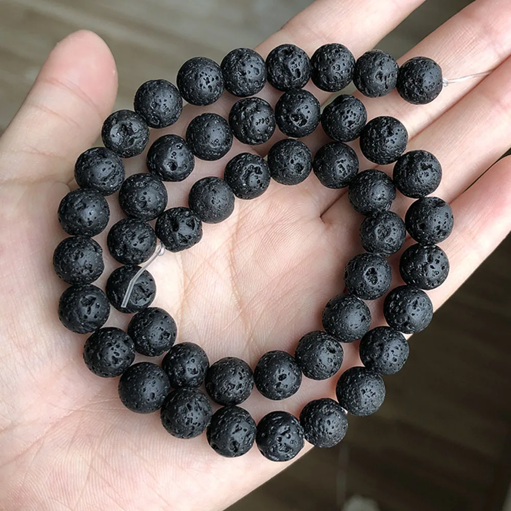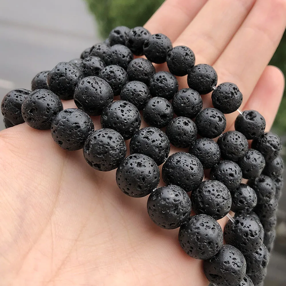Натуральный черный камень из вулканической лавы, круглые бусины из вулканического камня, бусины-разделители для ювелирных украшений 4681012 мм, мужские браслеты-цепочки DIY