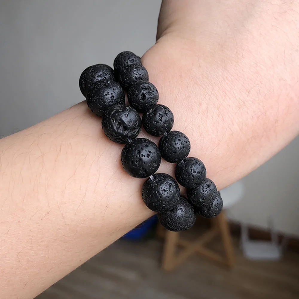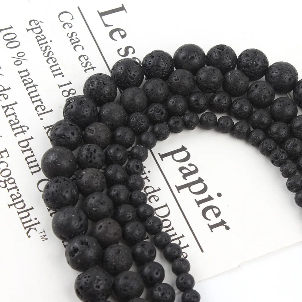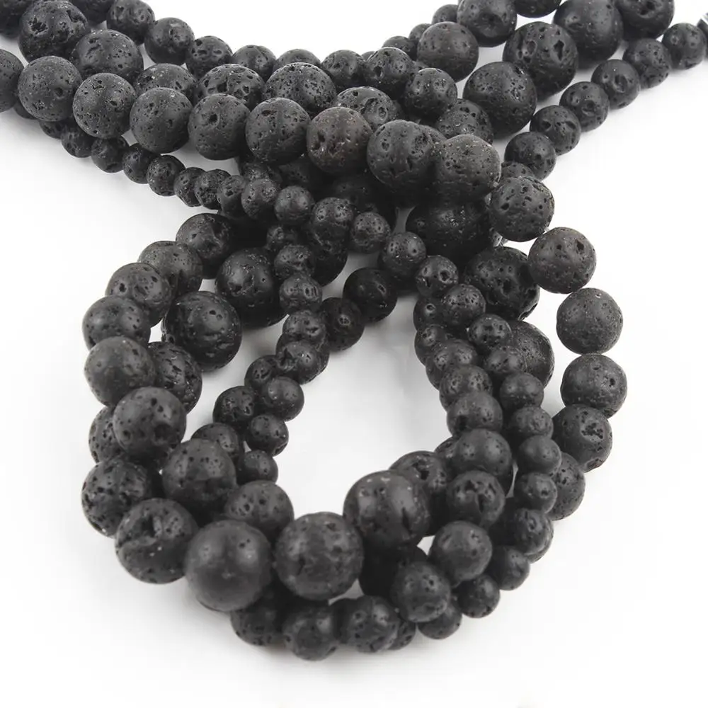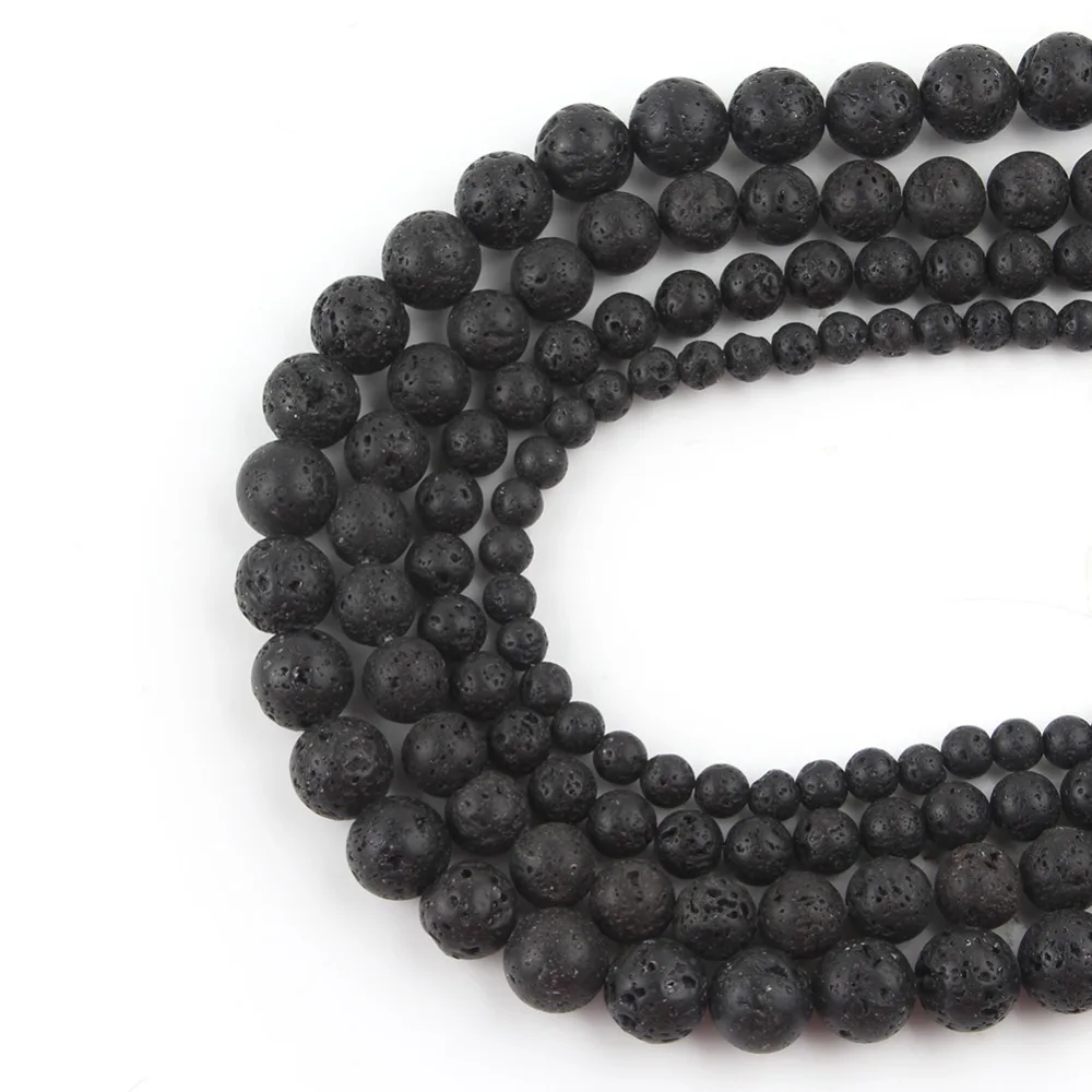 Натуральный черный камень из вулканической лавы, круглые бусины из вулканического камня, бусины-разделители для ювелирных украшений 4681012 мм, мужские браслеты-цепочки DIY