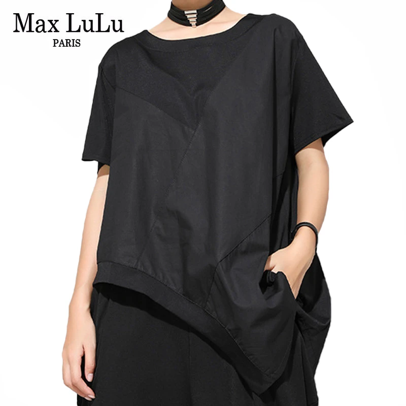 Женская хлопковая Футболка Max LuLu, повседневная черная футболка с коротким рукавом, в стиле панк, в Корейском стиле, на лето, 2020