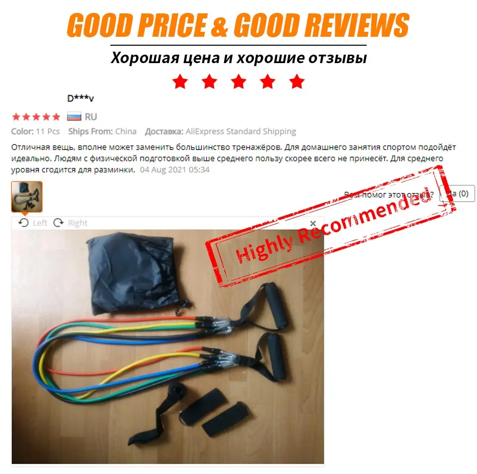 Отличный домашний тренажёр! Позволяет дать мышцам очень приличную нагрузку. Мне достаточно даже 2-3 резинок пока. Я думаю, что этот тренажёр подойдёт даже спортсмену со стажем. Можно придумывать различные вариации использования. Крепления надёжны и просты в использовании. Заказ пришёл со склада в России за 6 дней. Удивительно общительный и отзывчивый продавец. Это очень приятно и удивительно) Спасибо за товар, спасибо за общение, спасибо за подарок! Я довольна покупкой! Продавцу 10 звёзд!