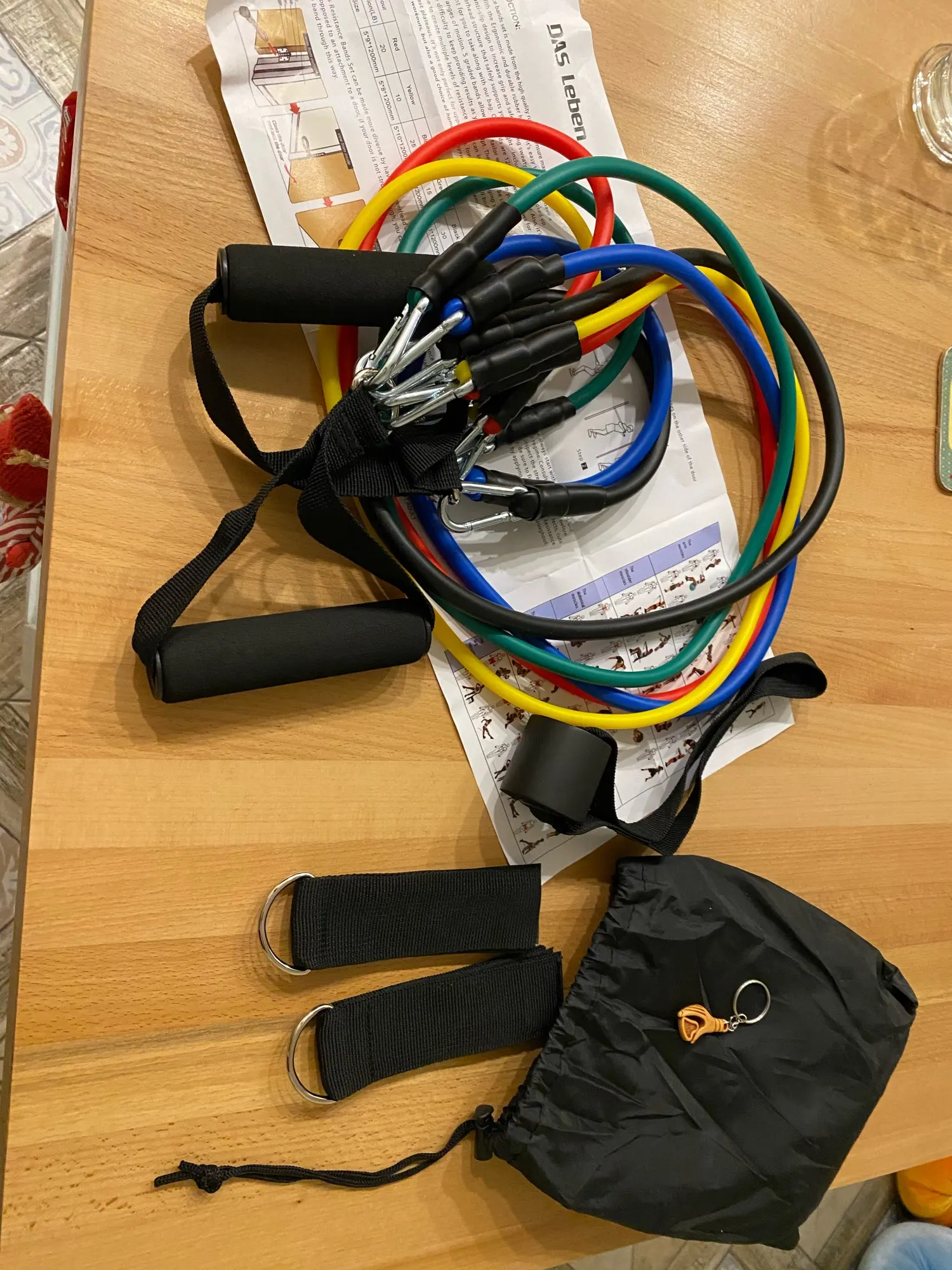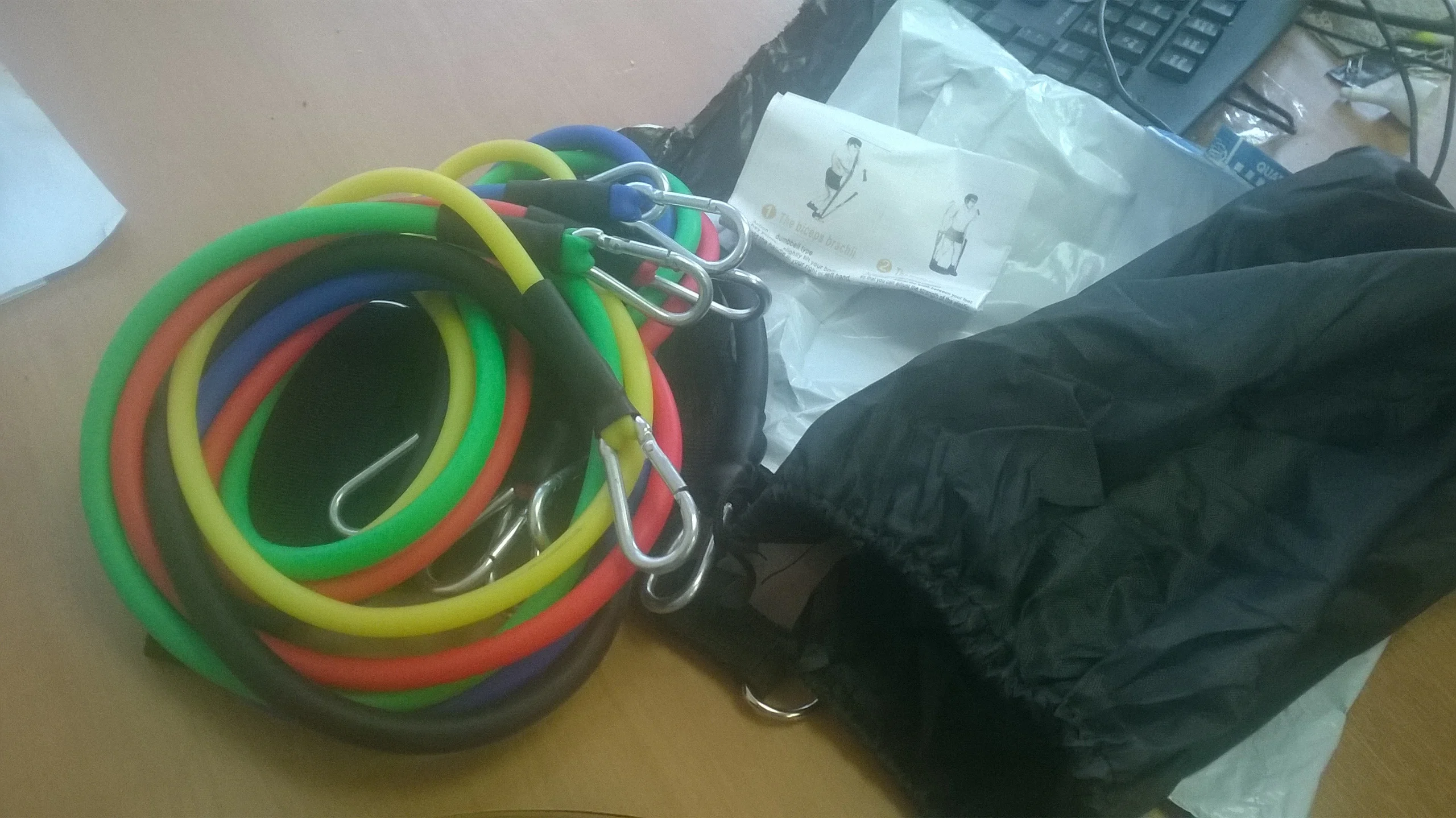 Качество товара хорошее, всё соответствует описанию. Резинки трубчатые. Крепления прочные, уже проверил в действии, на тренировке. Посмотрим, как они покажут себя в дальнейшем. Если будет что дополнить, обязательно напишу. За брелок, спасибо продавцу. Заказ не отслеживался, доставка была из России. Прислали смс, что посылка уже на почте.
