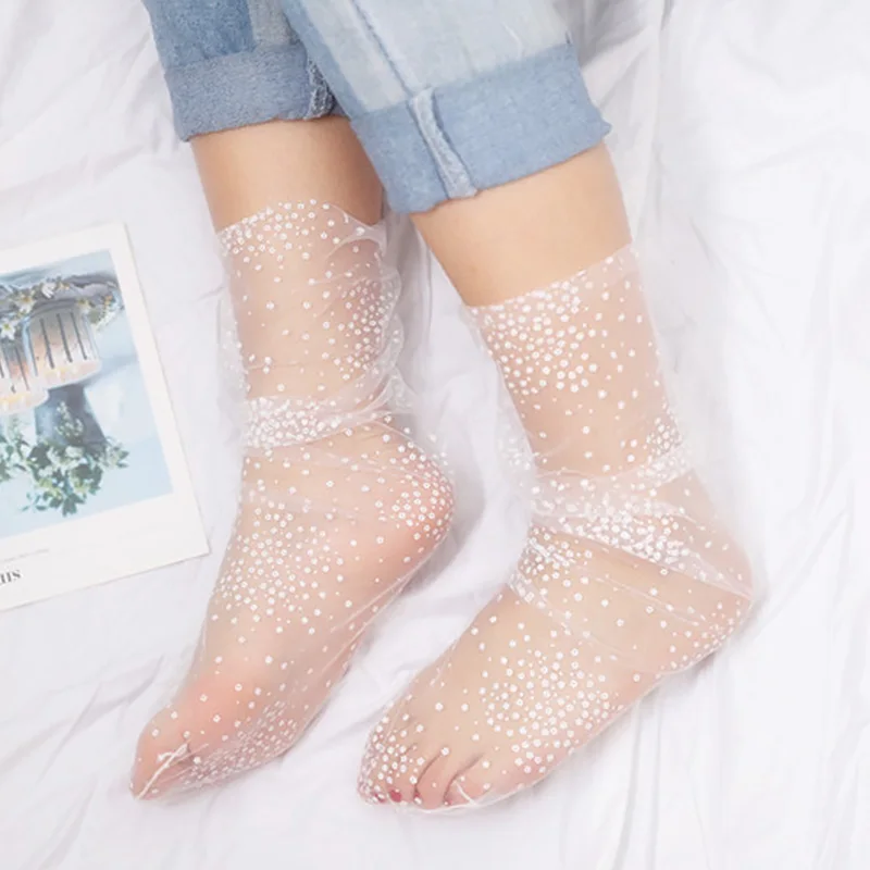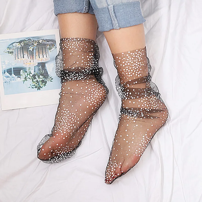 Носки женские, прозрачные, из тюля, в горошек, черные, белые