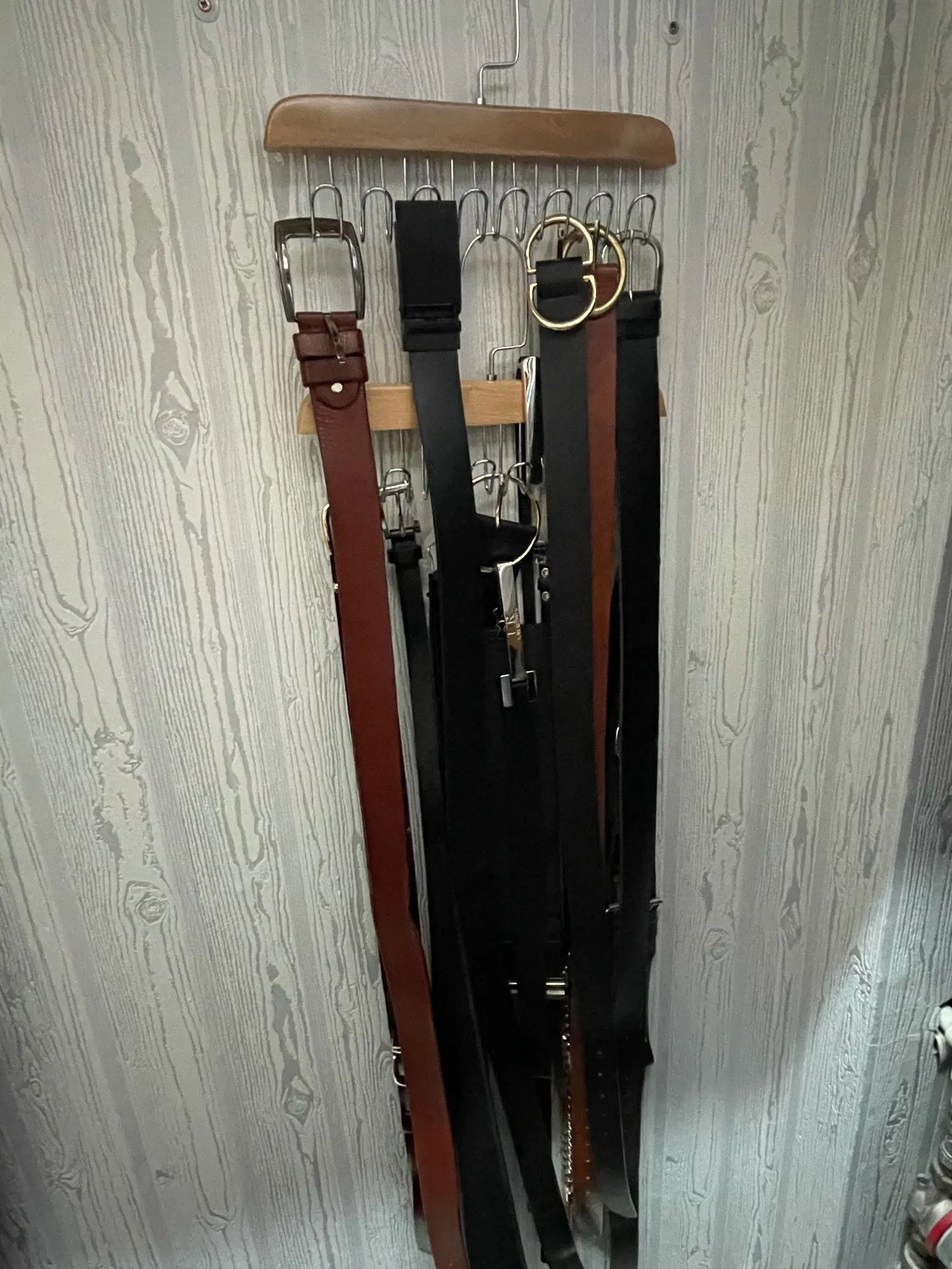 Отличные вешалки - сделаны добротно, своих денег стоят. Ремни вмешаются хорошо, можно даже использовать по 2 на крючок. Рекомендую