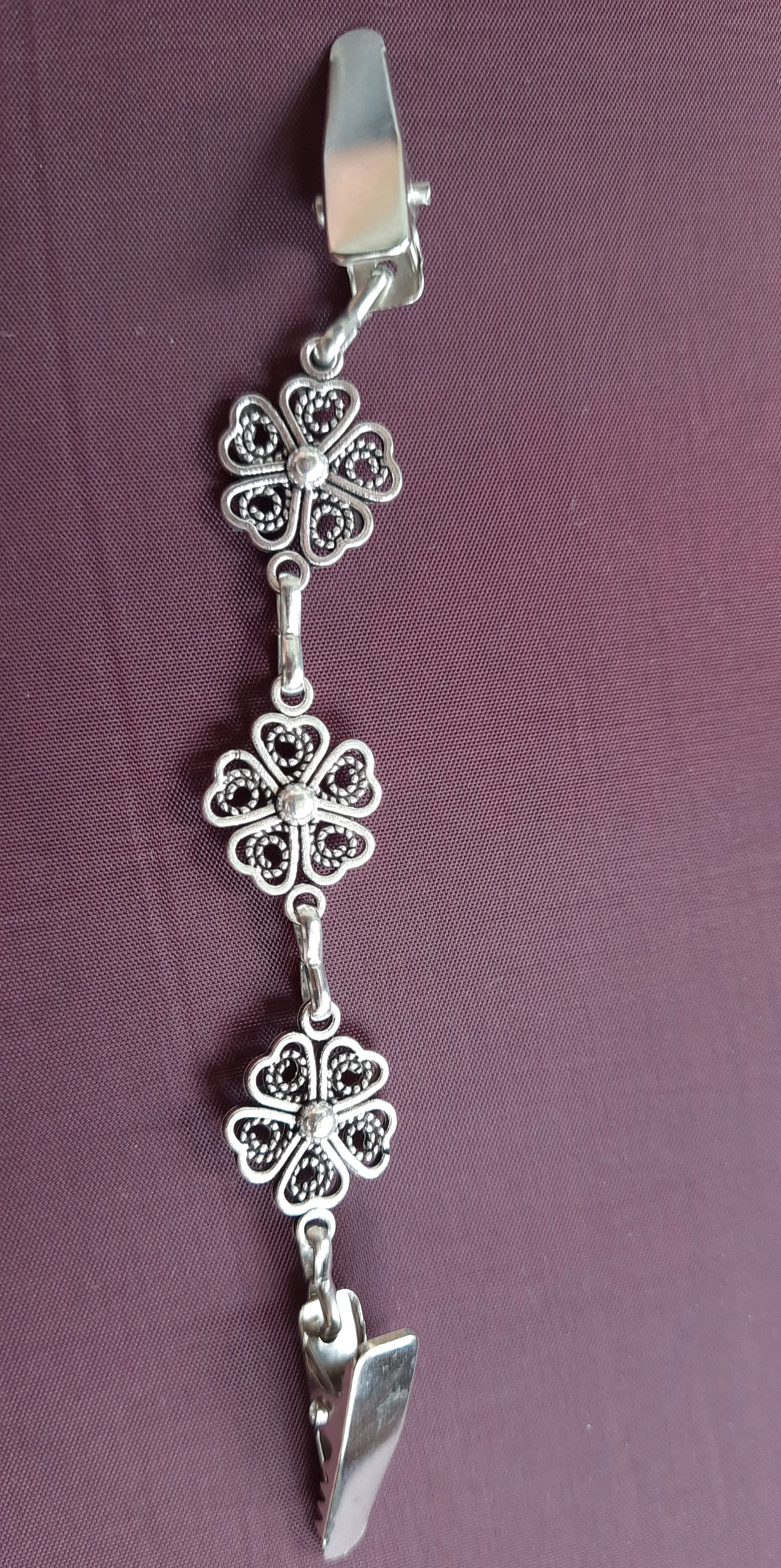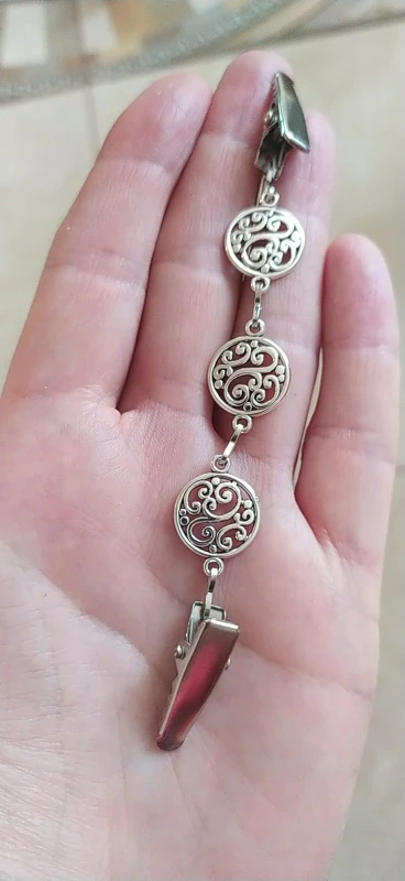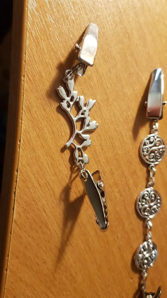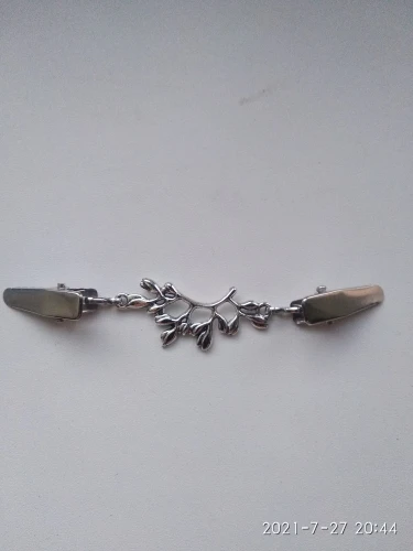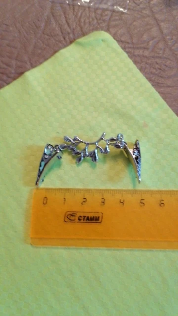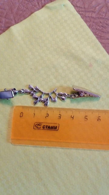 Хороший зажим для лёгких вещей. Сам лёгкий. Красивый. Как на фото. Только само соединение на внутренней (на нижней) стороне зажима, а лучше смотрелось бы на внешней стороне, ну ладно, не критично. Все равно хорошо смотрится. Доставили быстро в совместной посылке. Продавцу спасибо!!!