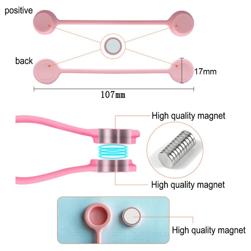 2. Прочные магнитные завязки идеально подходят для управления всеми предметами СО ШНУРАМИ, такими как наушники, зарядный кабель, фен и т. д.