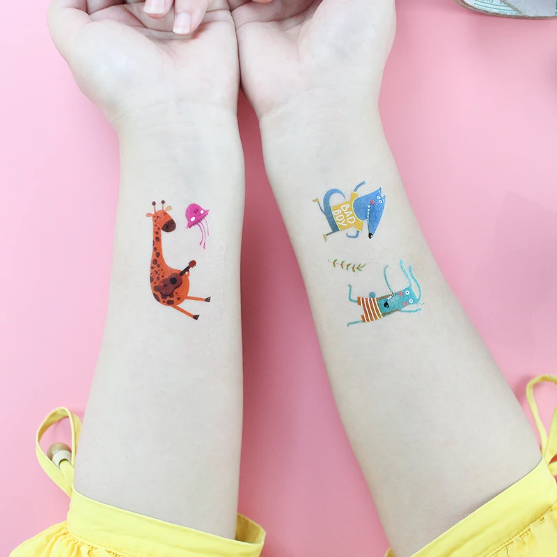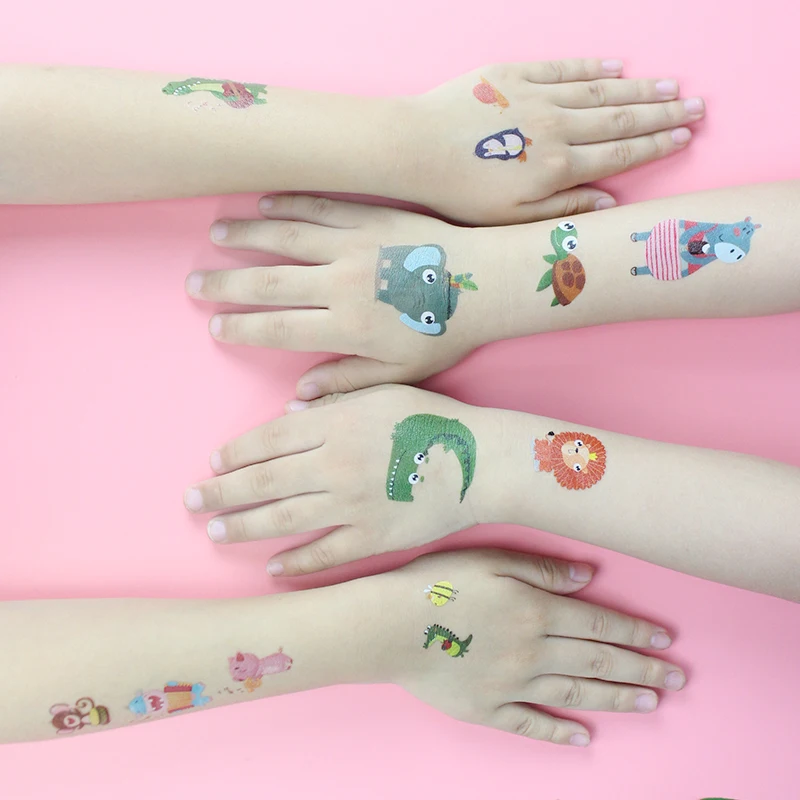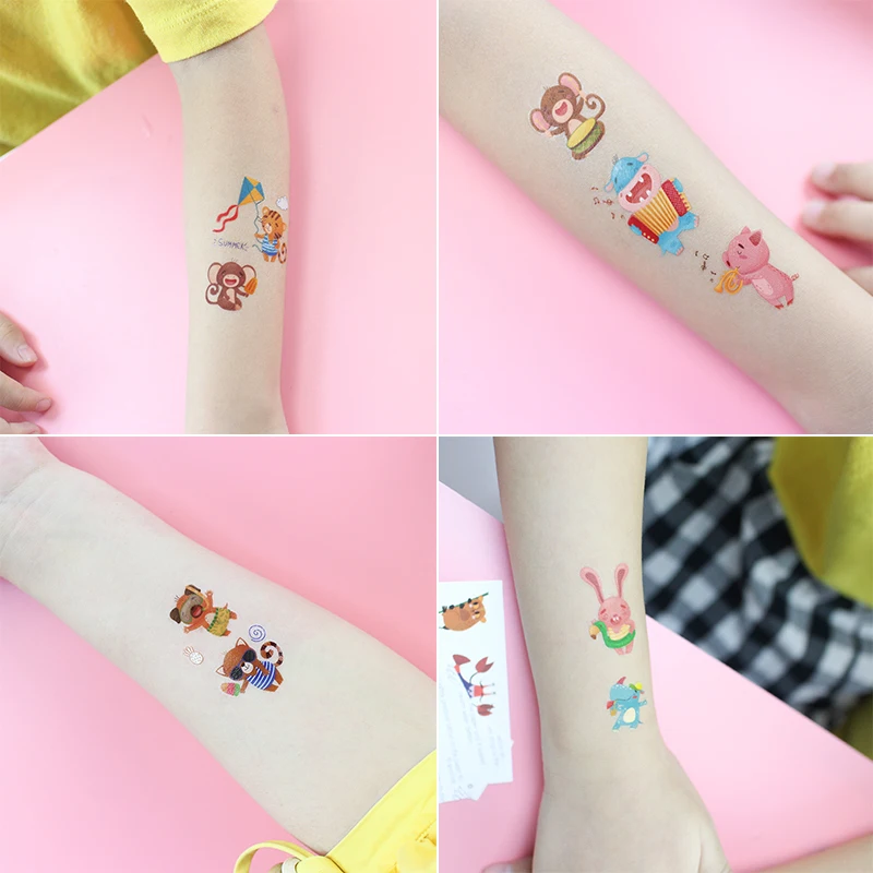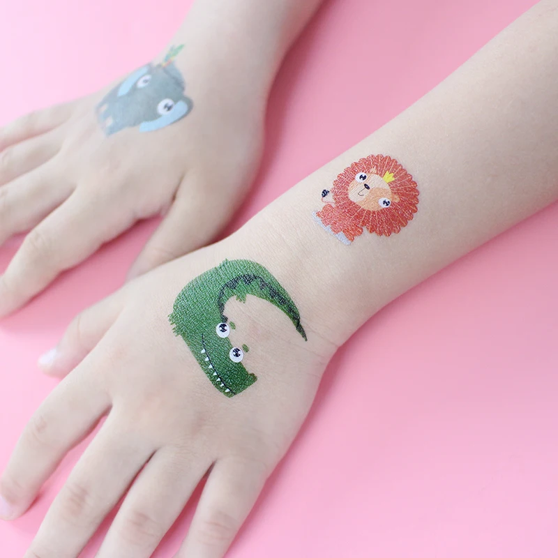 Водостойкие временные татуировки с мультипликационными животными для детей, милый динозавр, обезьяна, кролик, наклейки для татуировок для мальчиков и девочек, поддельная флеш-Татуировка