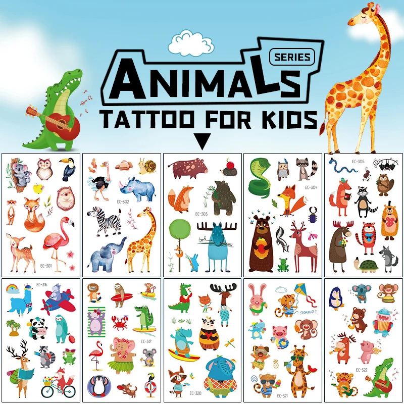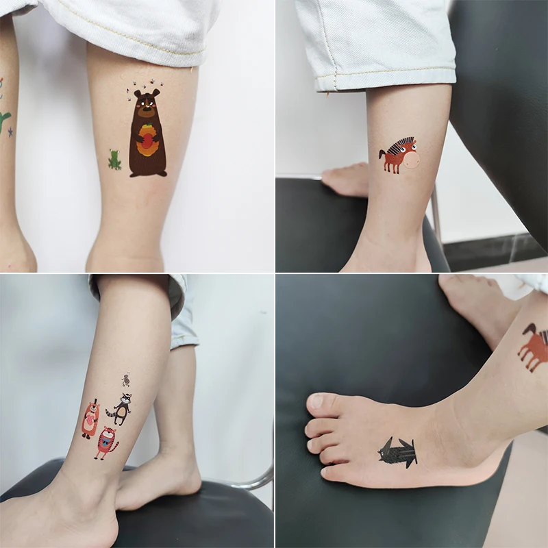 Детская татуировка, стикер, животные, мультяшная татуировка, Медвед...