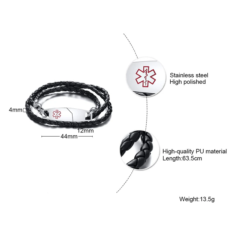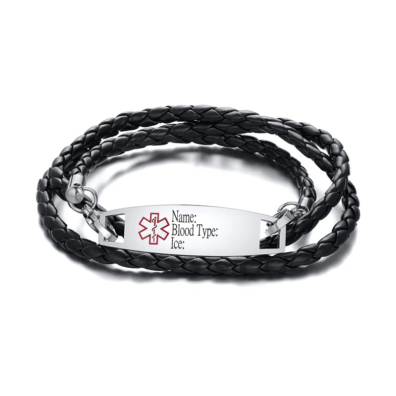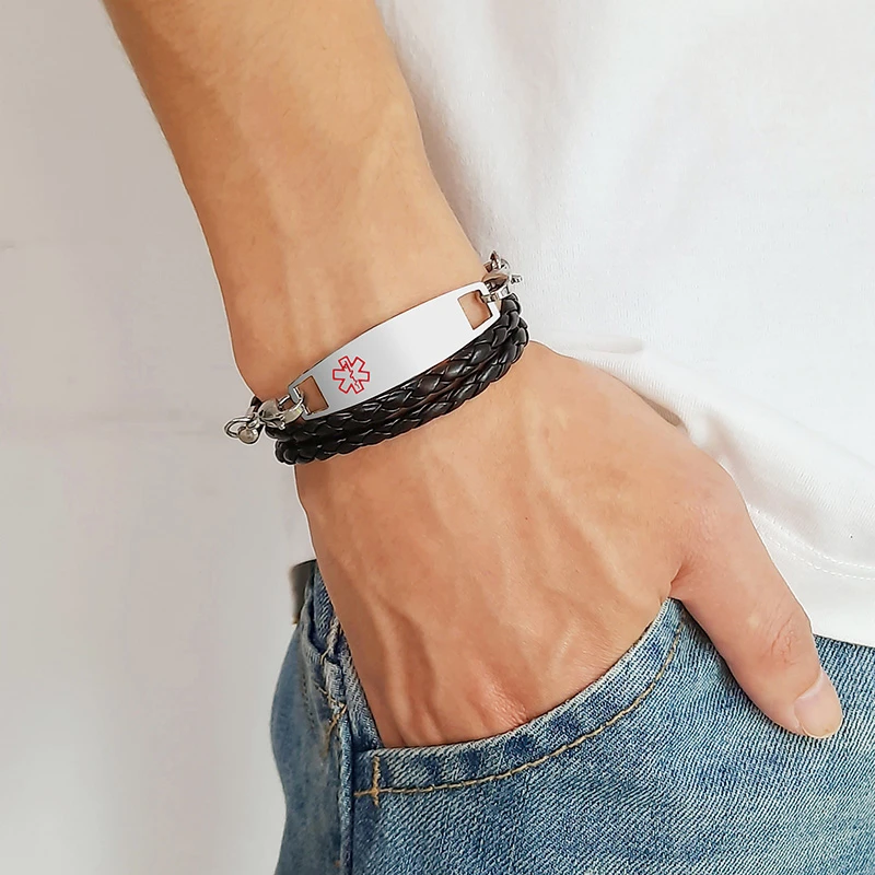 Бесплатная гравировка медицинского оповещения ID браслеты на заказ из нержавеющей стали плетеный кожаный тройной Браслет SOS для мужчин