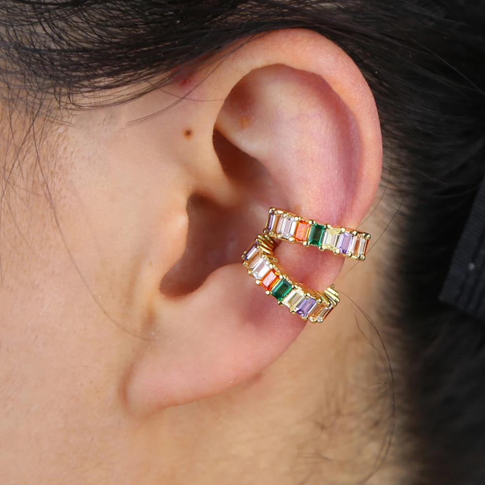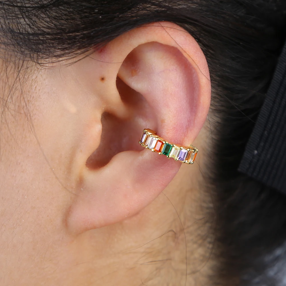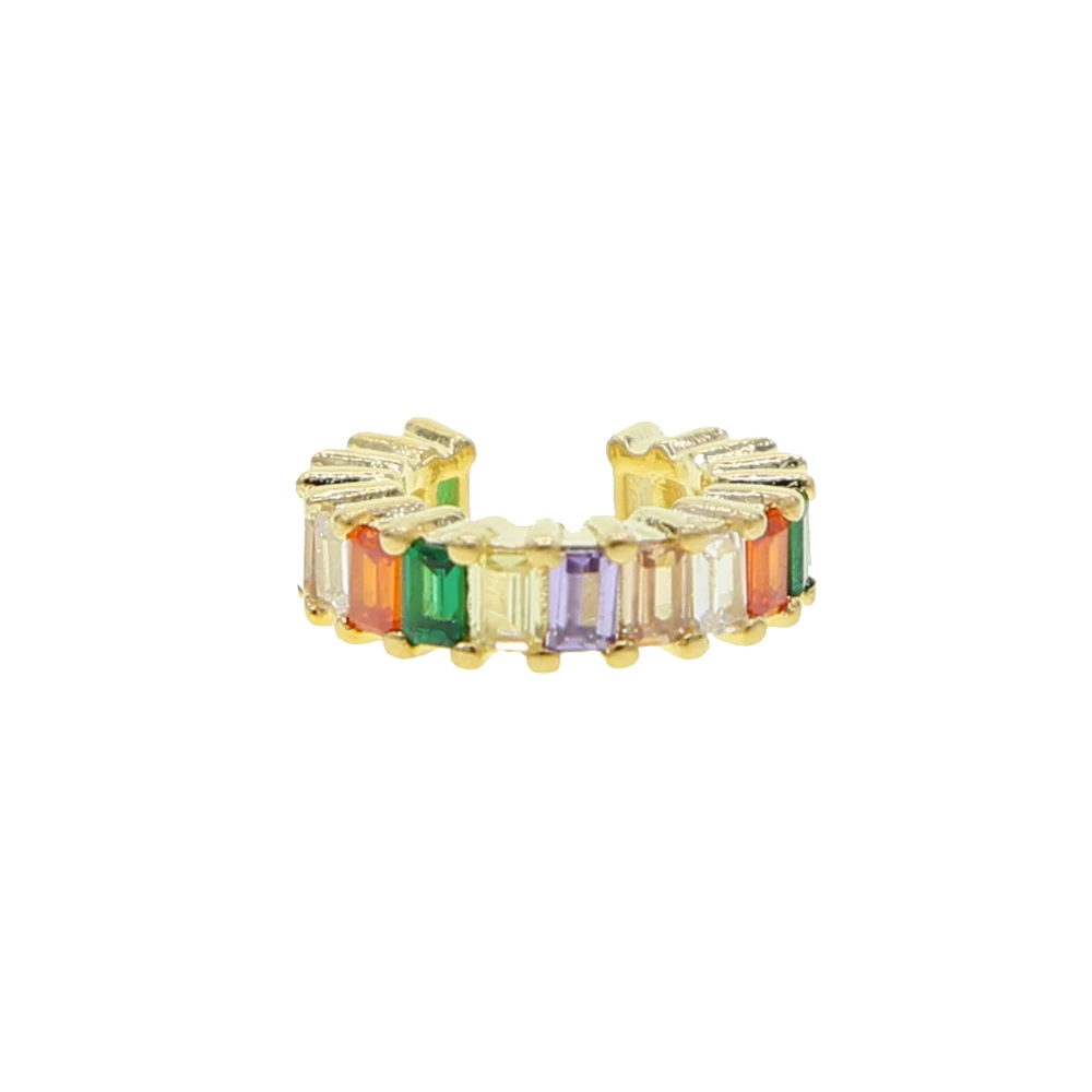 Без пирсинга без пирсинга Золотая, радужная Сумочка Багет cz ухо манжеты 2020 лето клип на серьги Новинка 1 шт1. Плакировка золота2. Продажа за штуку, 1 штука3.cz кубический цирконий камень