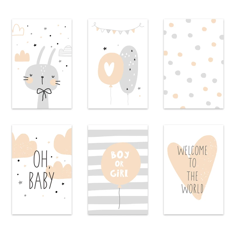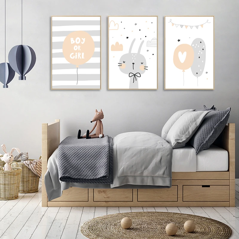 Детская комната, холст, постер, кролик, воздушный шар, цитата, настенная живопись, детская комната, украшение, картина, скандинавский домашний декор