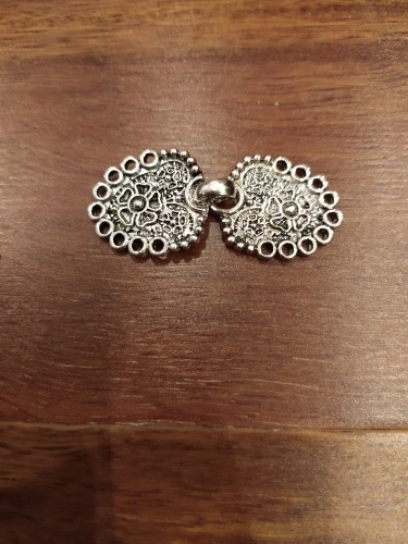 Застёжка шла более 5 недель. Оказалась чуть меньшего размера, чем ожидалось. Необходимо пришивать к изделию в трёх местах каждую часть. Выглядит неплохо. Рекомендую.