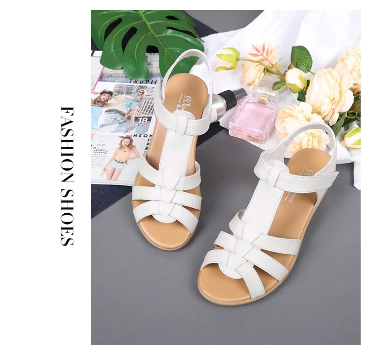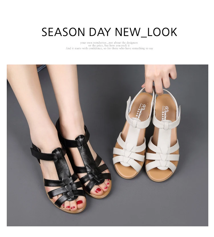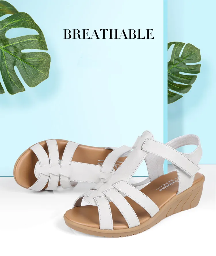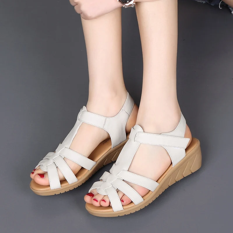 Сандалии женские из натуральной кожи, Нескользящие босоножки на танкетке, с мягкой нескользящей подошвой, для женщин среднего и пожилого возраста, летние