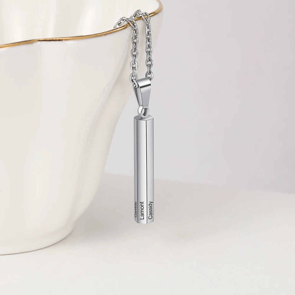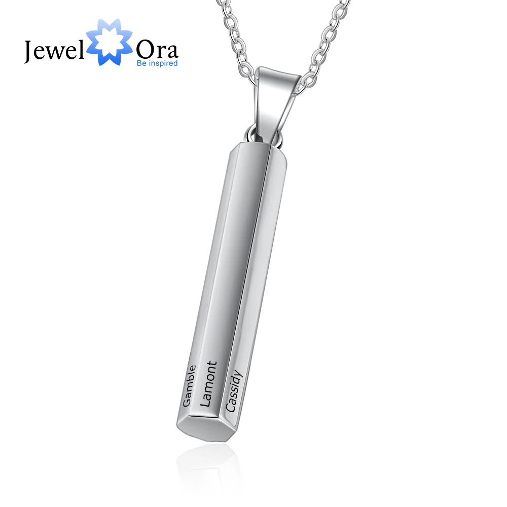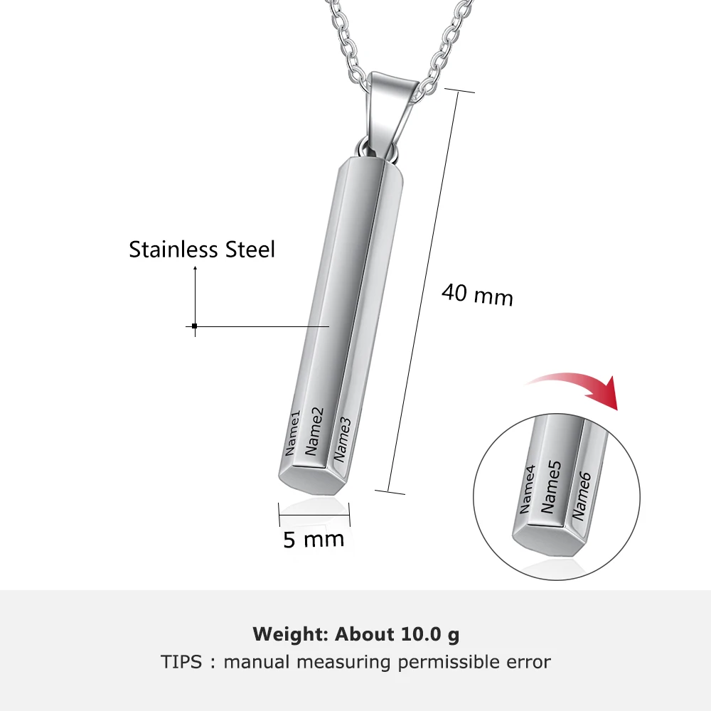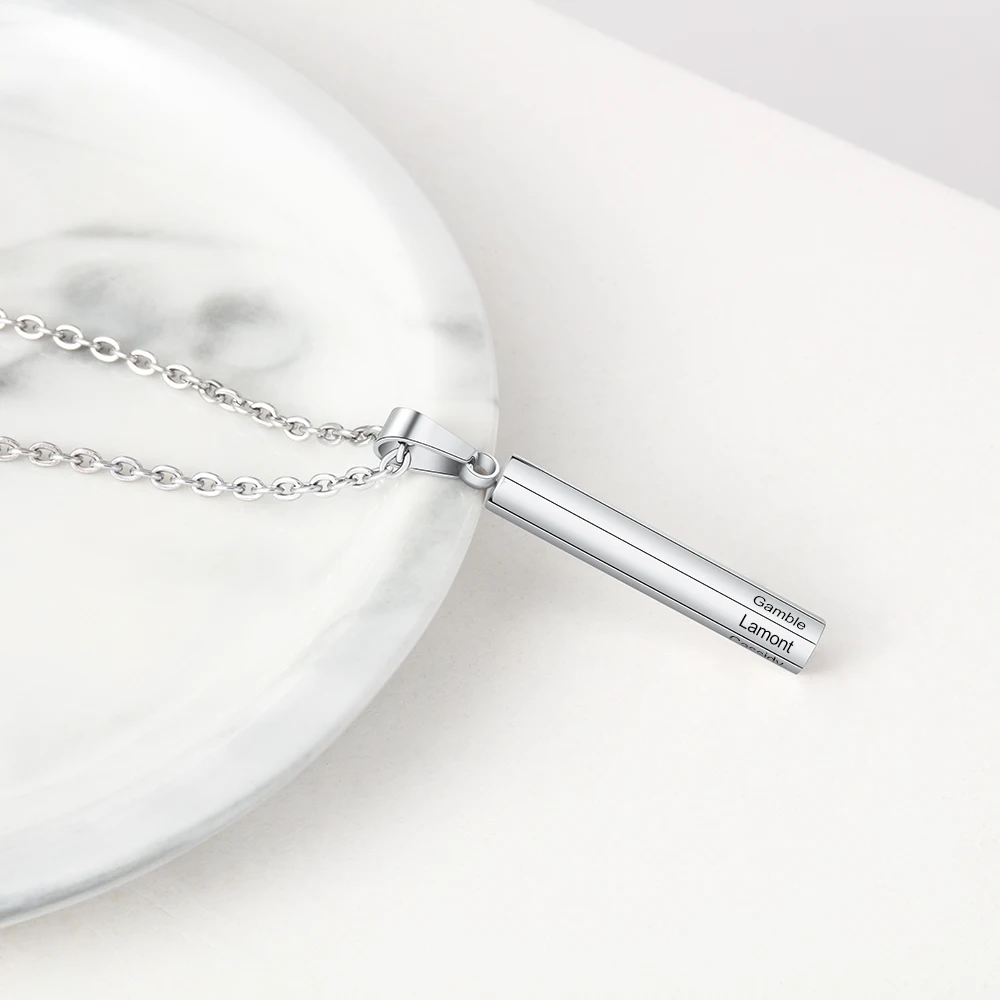 Ожерелье с подвеской унисекс, персонализированное ожерелье из нержавеющей стали с вертикальной штангой, с 6 гравировками по бокам, хороший подарок, бижутерия