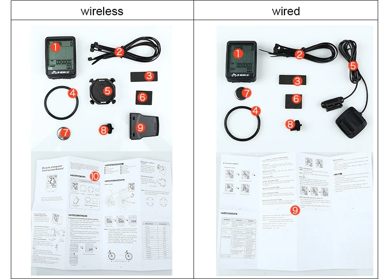 Посылка включает в себя: Беспроводной велосипедного компьютера: 1 * одометр спидометр 1 * Беспроводной база 1 * Беспроводной базовый датчик 1 * магнит 2 * клейкая Стикеры 5 * плечевой ремень 1 * Руководство пользователя