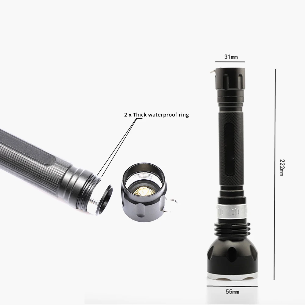 Светодиодный фонарик для дайвинга IPX-8, профессиональный подводный мощный фонарь с поворотным сенсорным выключателем, водонепроницаемая лампа
